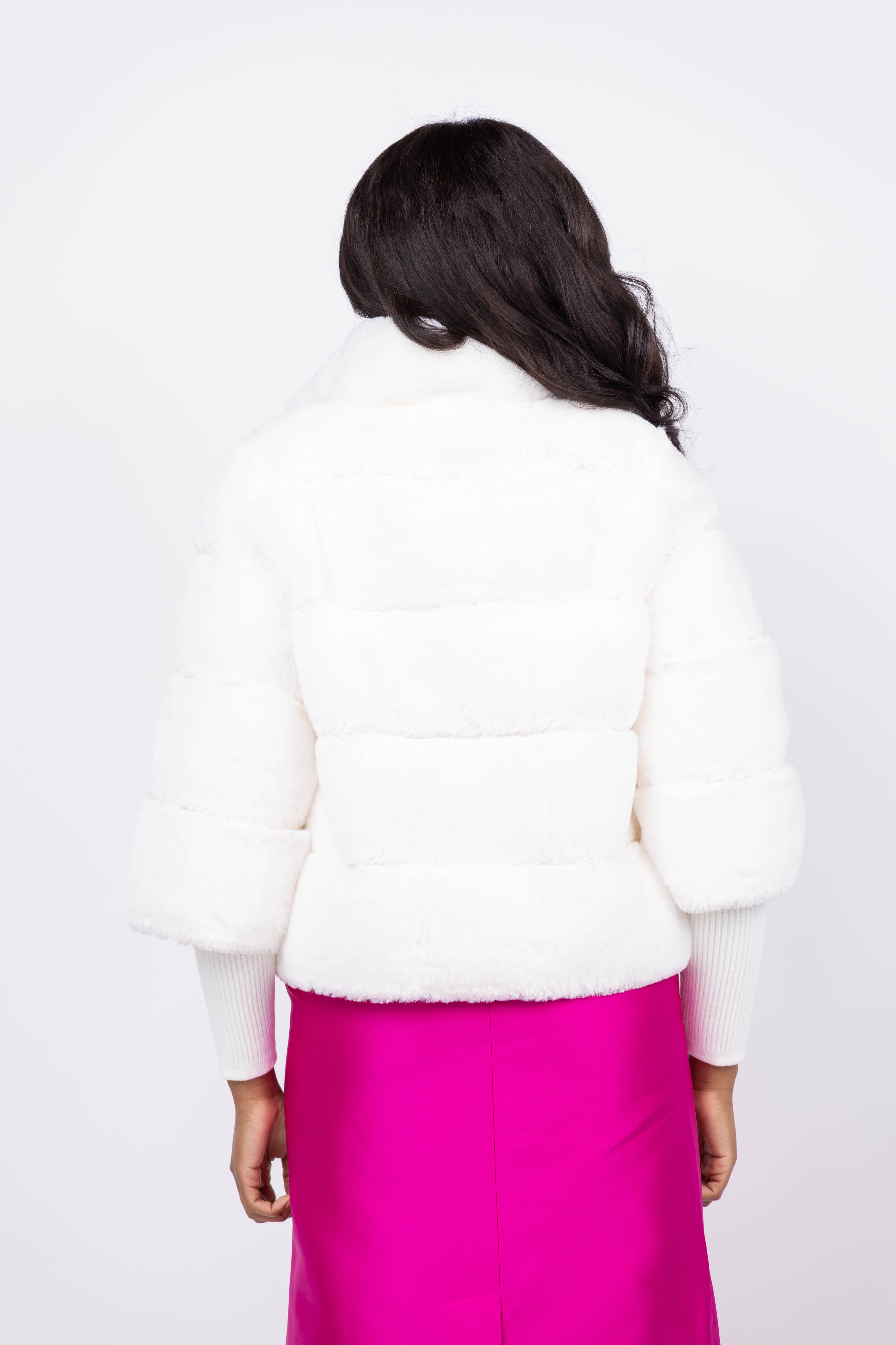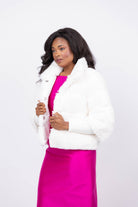 The Love Token Samantha Jacket in Ivory combines cozy faux fur paneling with a sleek stand collar and snap front closure for effortless style and warmth. Featuring convenient front slit pockets and ribbed knit sleeve cuffs, this relaxed-fit jacket offers comfort and practicality, making it perfect for layering on chilly days while elevating your everyday look.