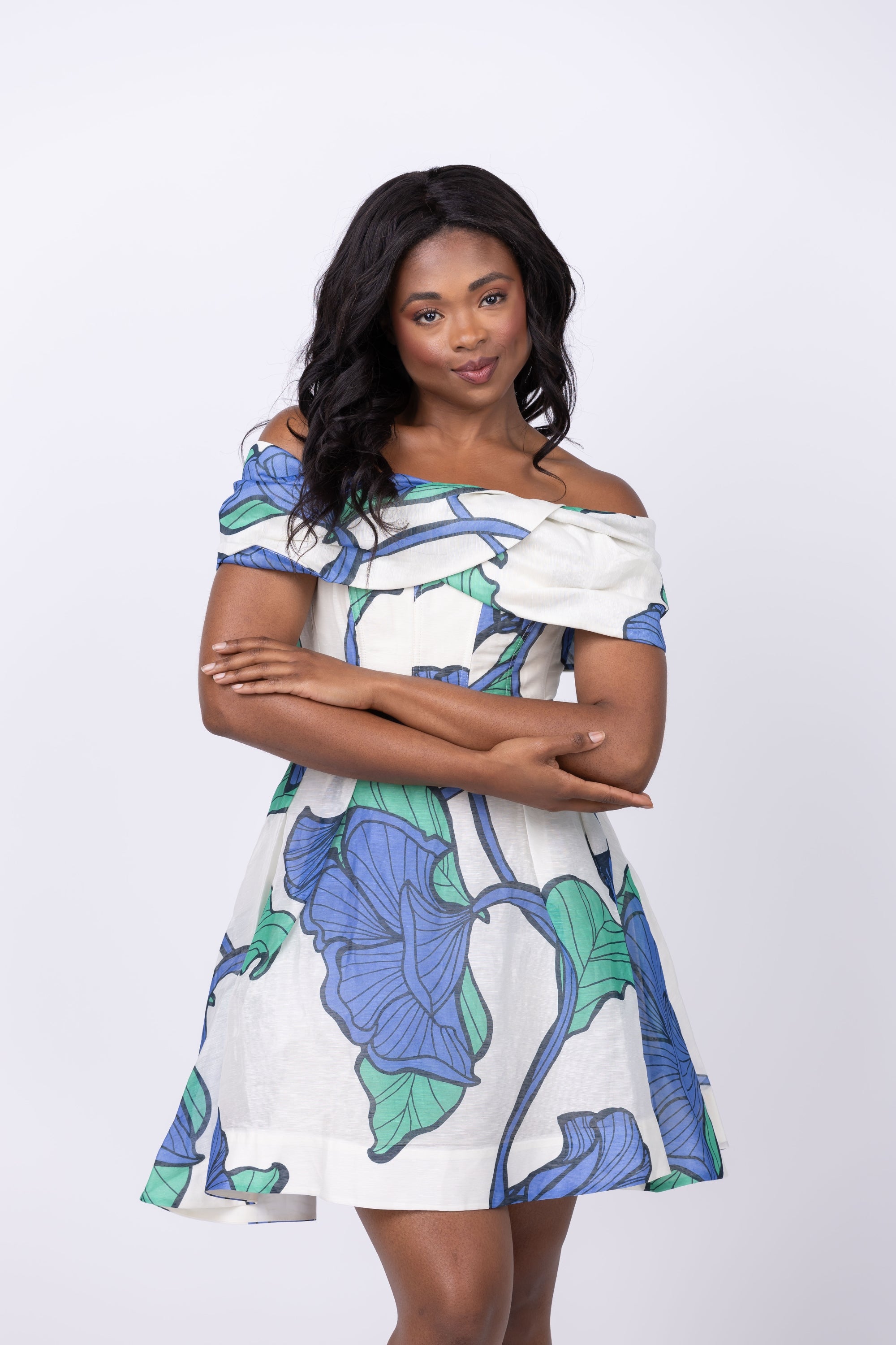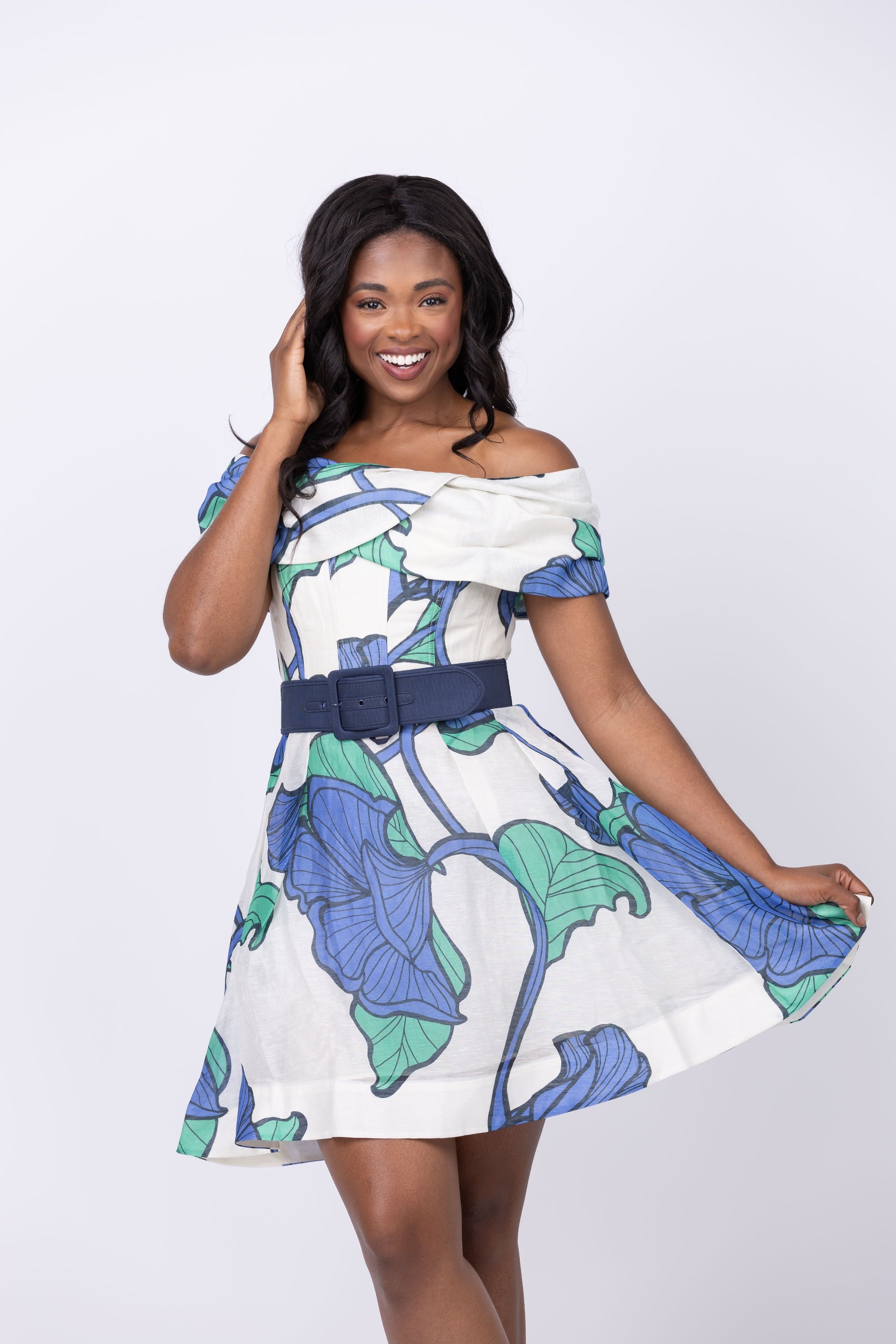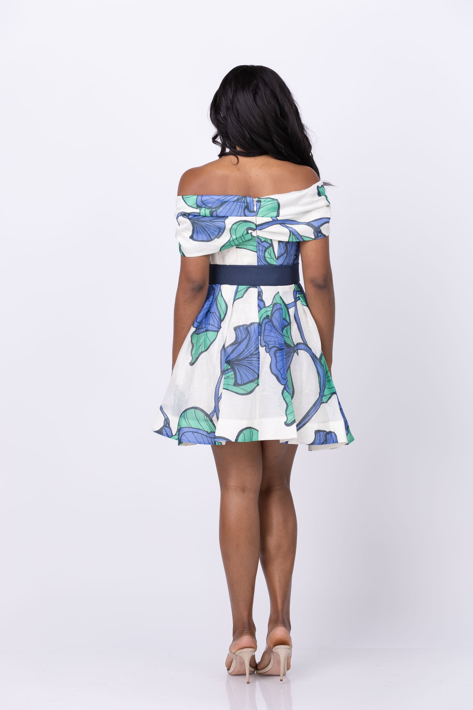 Rebecca Vallance Blue Ivy Off Shoulder Mini Dress in Print