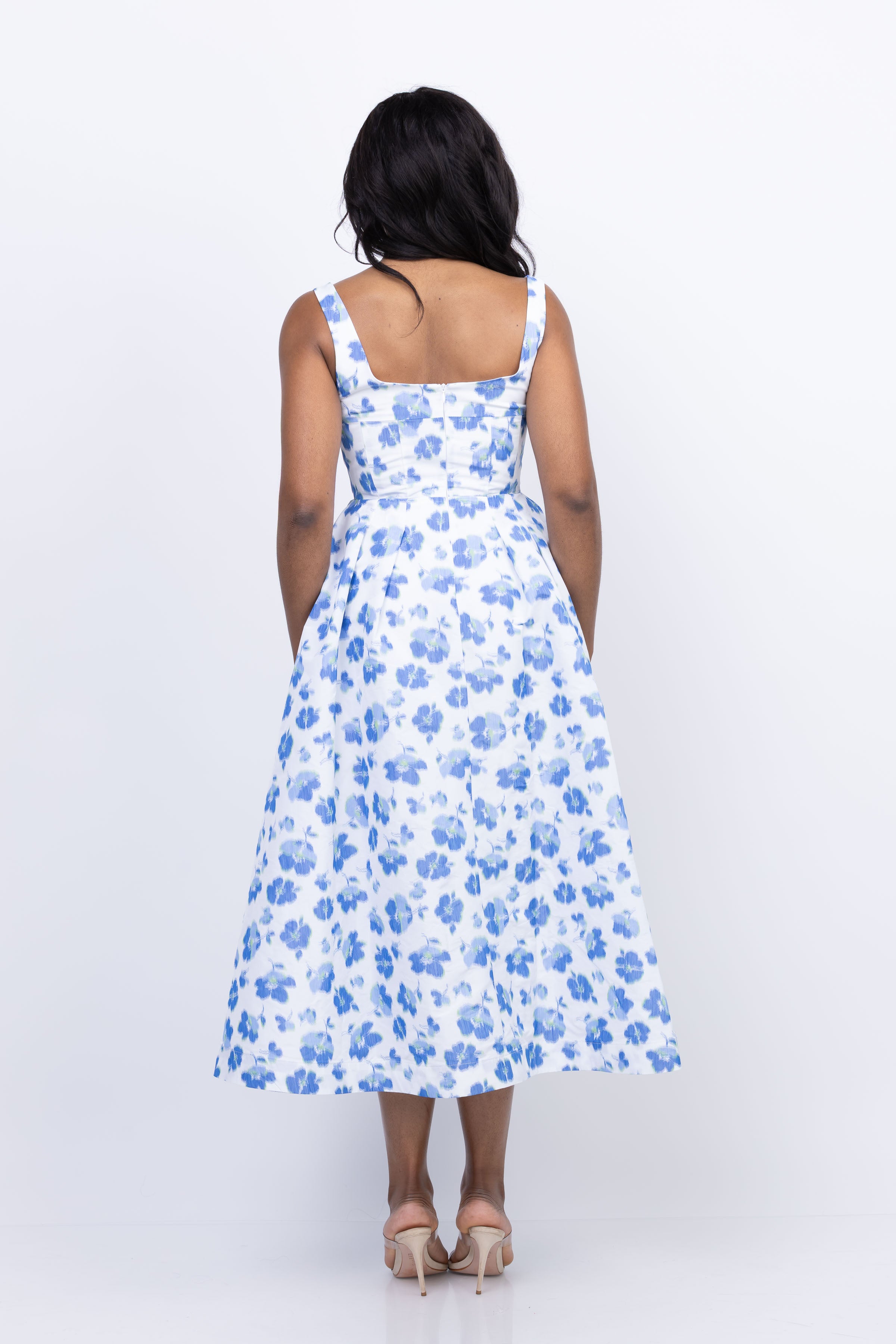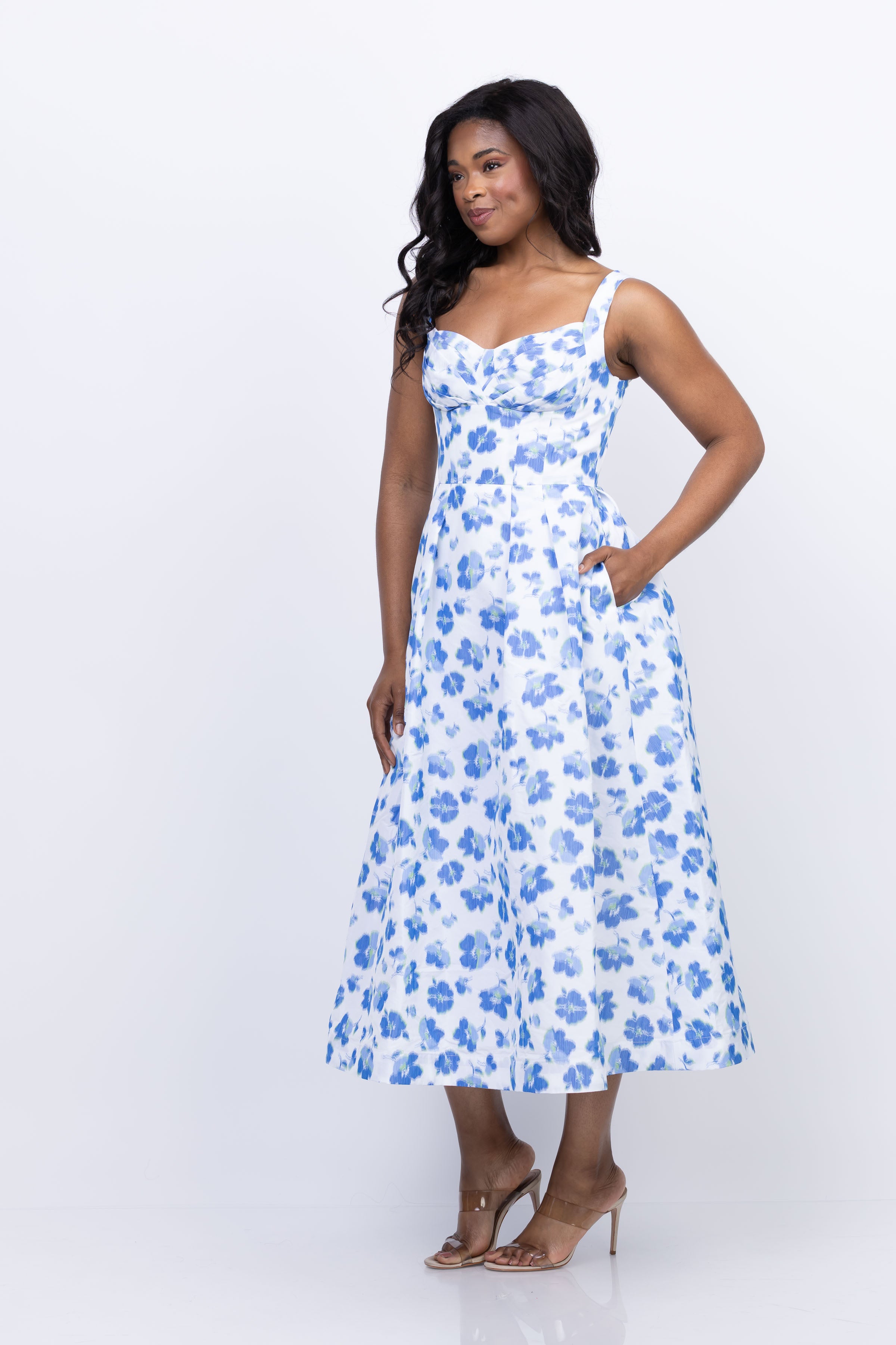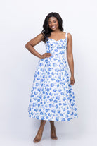 Introducing the Shoshanna Ophelia Dress in Ivory/Cobalt, the perfect spring wedding guest dress! With a flattering midi length and elegant sleeveless design, you'll feel confident and stylish. Plus, the stunning floral print adds a touch of whimsy to any event. Elevate your look and turn heads with this must-have dress!