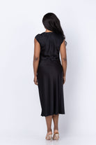 Elevate your wardrobe with this sophisticated Theory dress, designed to flatter and inspire confidence. The asymmetric neckline creates an instantly chic silhouette, while the expertly crafted twist detail at the bodice adds dimension and visual interest. A graceful drape at the waist ensures a flattering fit for all body types. Cap sleeves offer a refined touch, and the discreet back zipper provides easy dressing. Imported for quality craftsmanship, this black dress transitions seamlessly from office to evening, making it an essential investment piece for the modern woman.