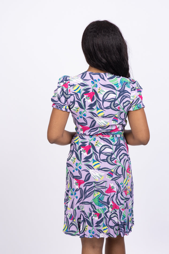 Cut from smooth vintage crepe, the Emilia has our iconic wrap silhouette updated with a ruffle hem and feminine cinched sleeves. Pack it in your suitcase with sneakers or sandals for your next sunny escape.