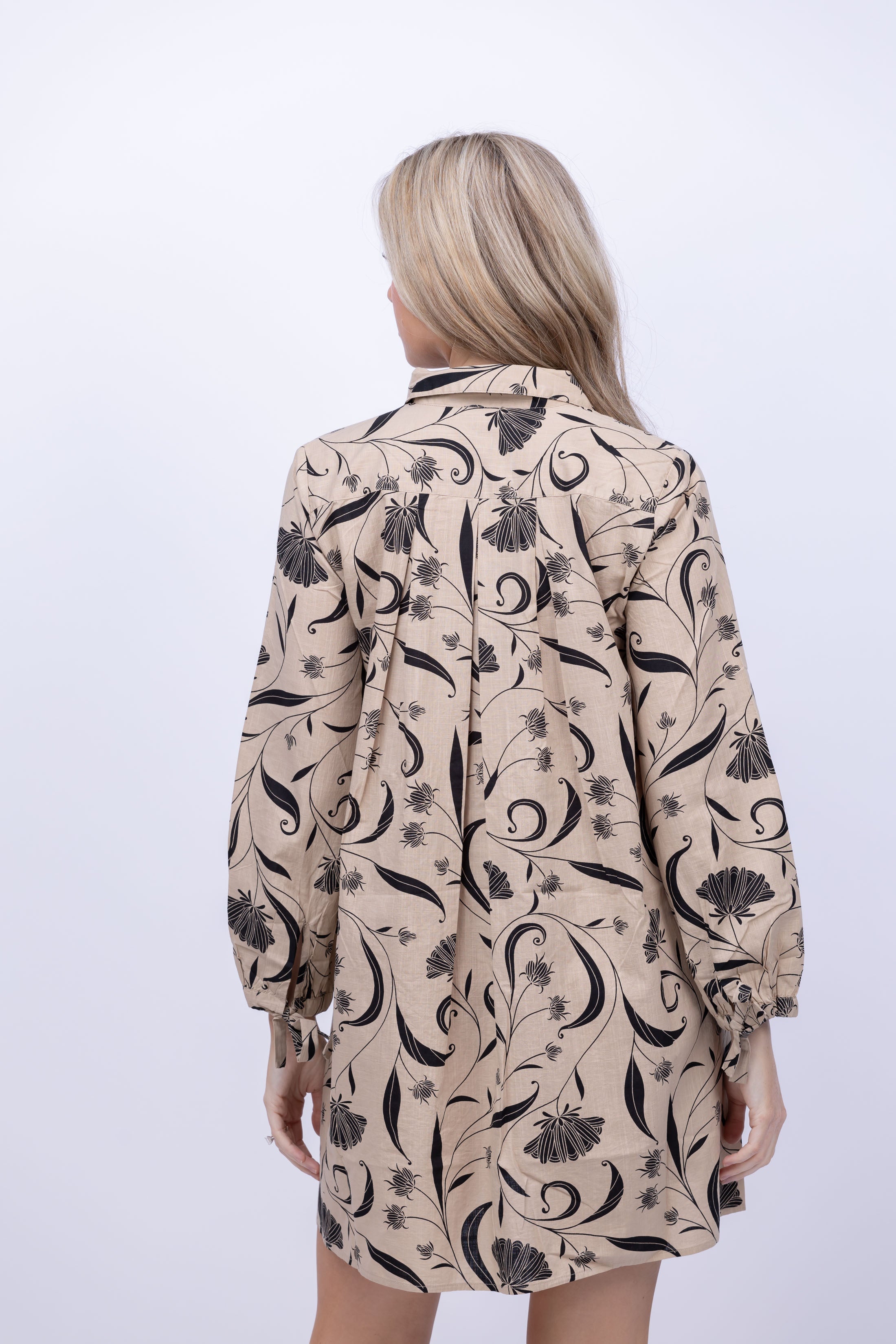 Stand out in this elegant Lilla P Button Front Shirt Dress in Stucco Print. Crafted from soft cotton slub shirting fabric, the relaxed fit features a functional button placket, ties at the sleeves, and pleats at the back for added volume. Feel beautiful and confident this season!