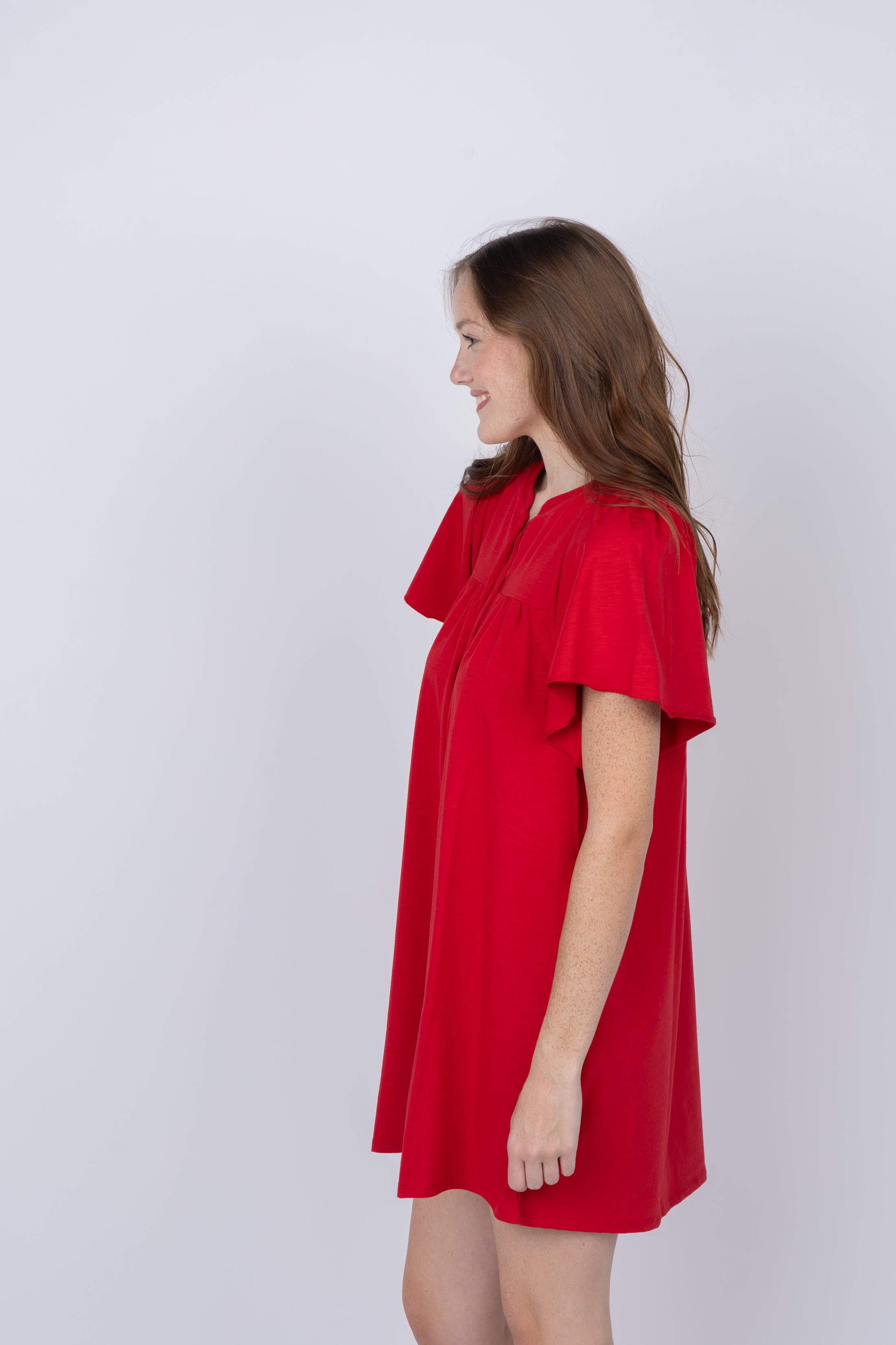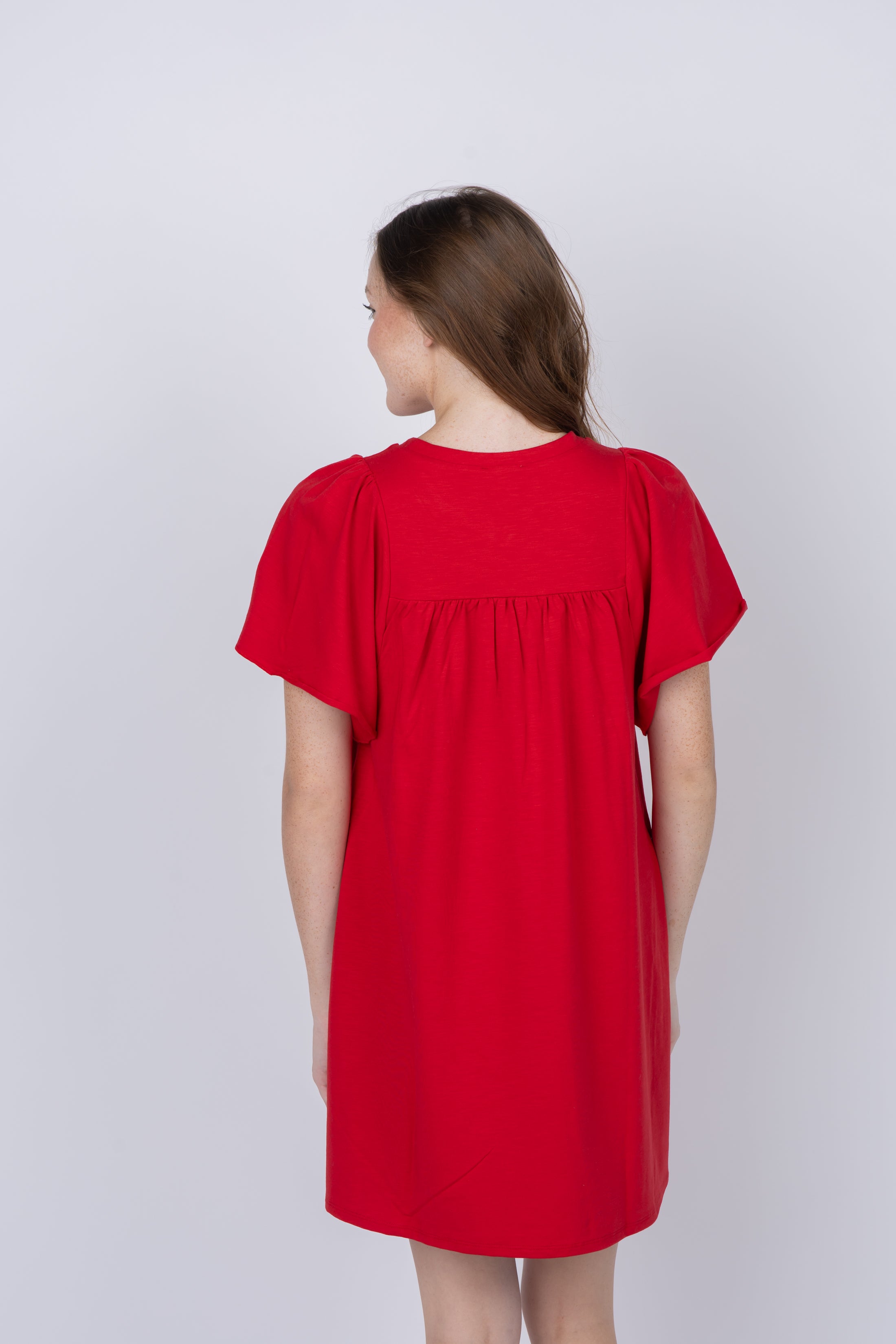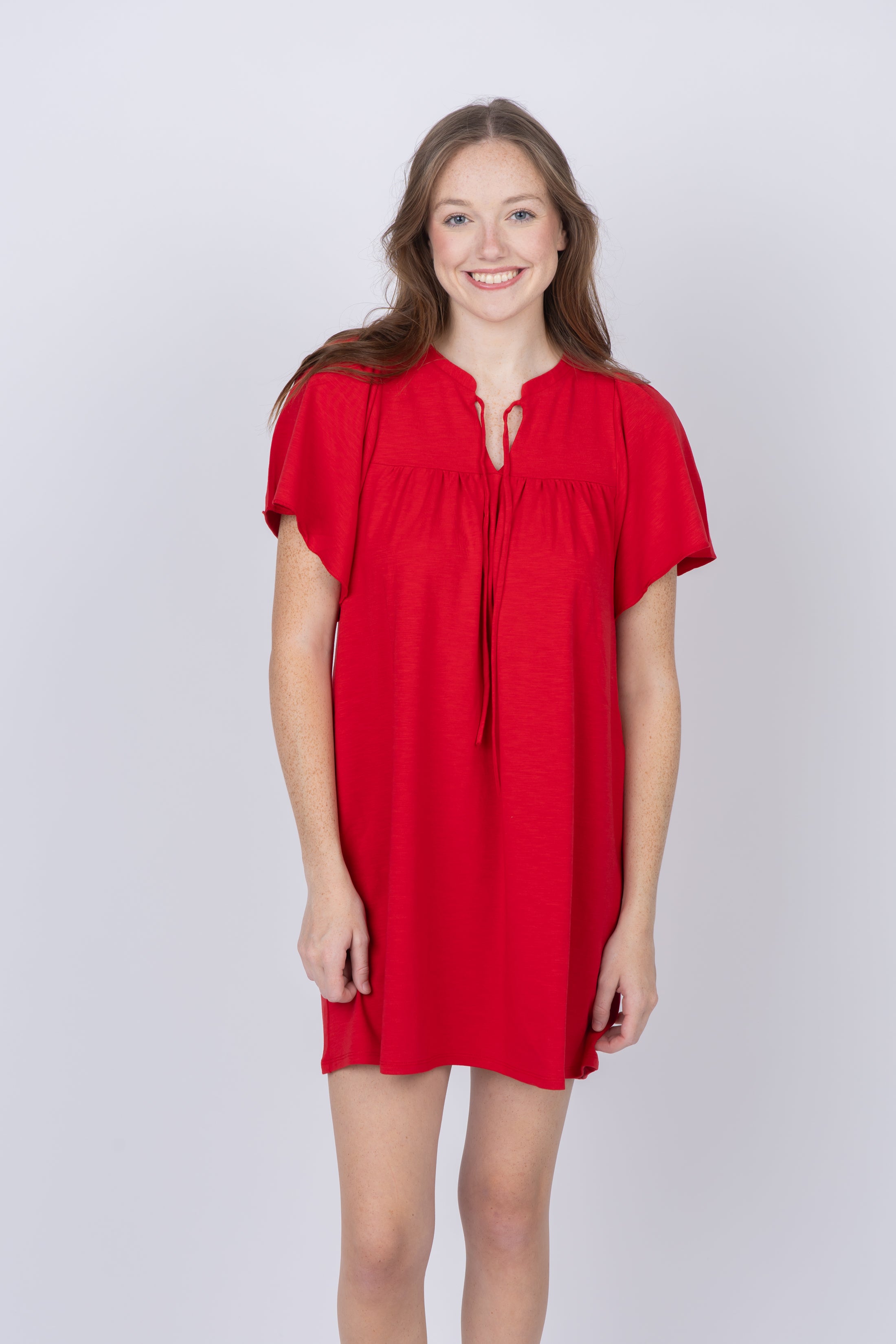 Look sophisticated and stylish in this beautiful Lilla P Split Neck Dress. Crafted with 47% Cotton, 47% Modal, and 6% Spandex, the dress features a flattering V Neckline with tie detail, a yoke, flutter sleeves and handy pockets. True to size, you'll always feel comfortable and confident. Turn heads, stand out, and make an entrance!