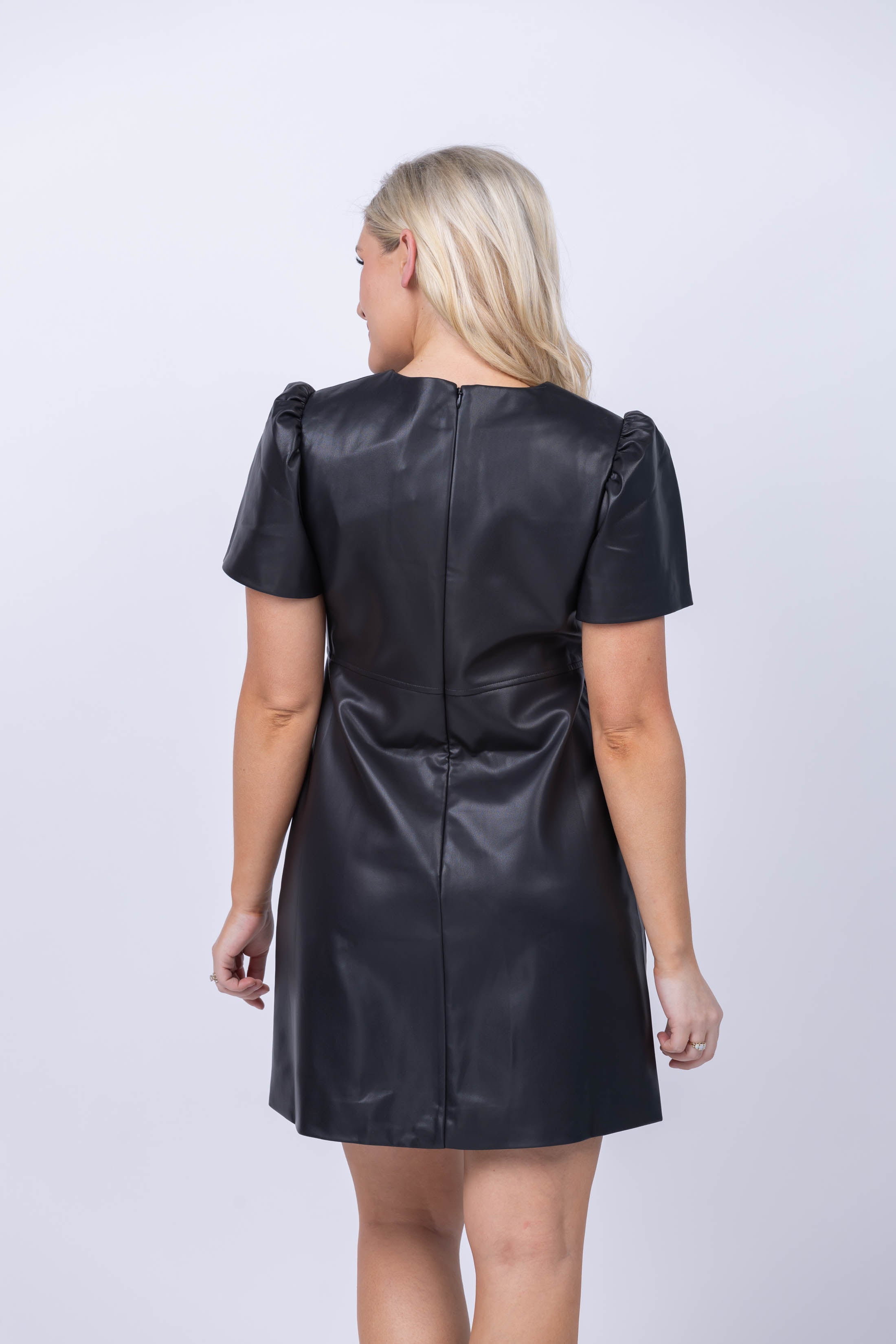 Designed in a vegan leather, the Antonella Dress is a standout mini dress for Fall.
