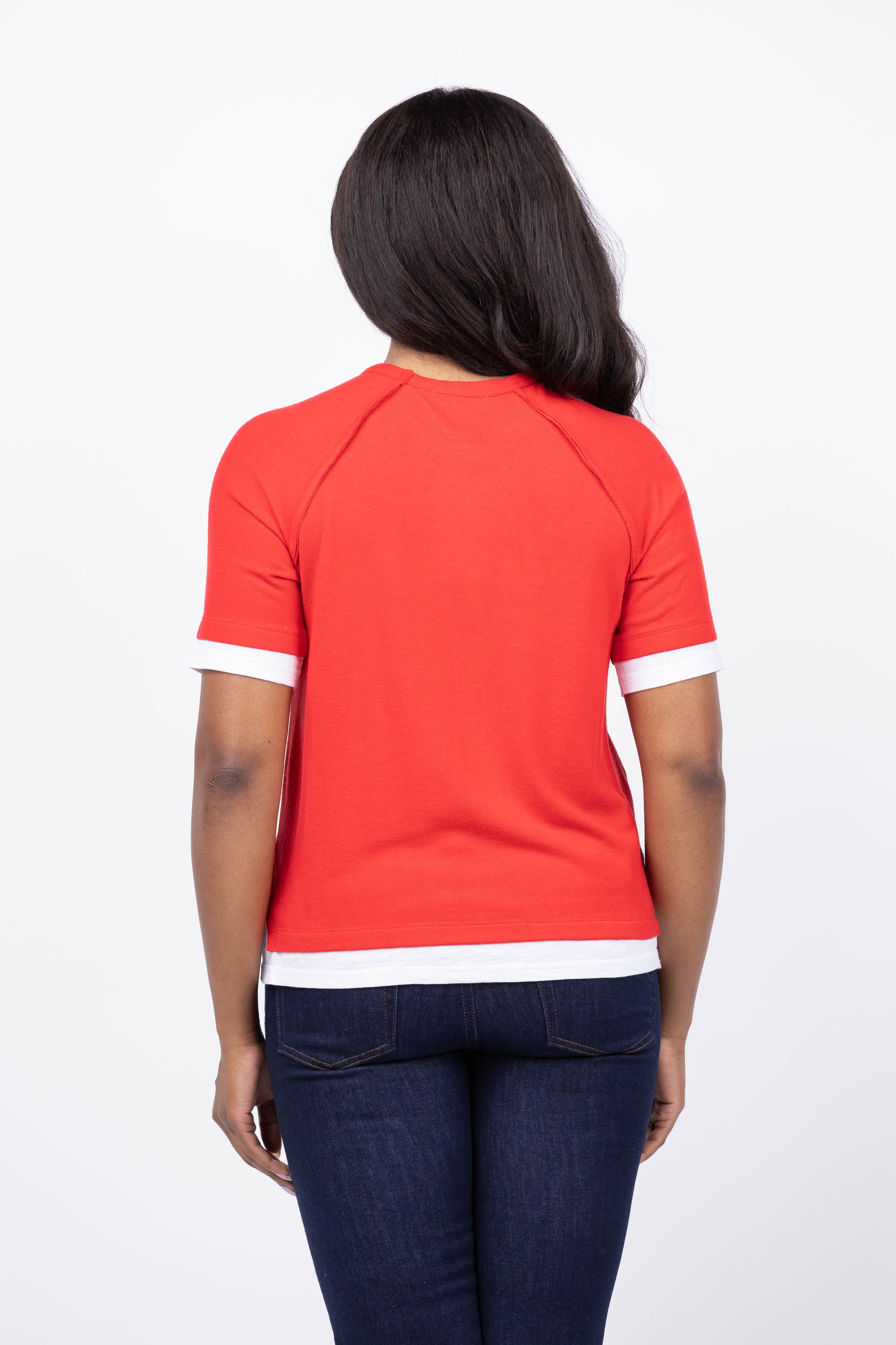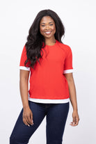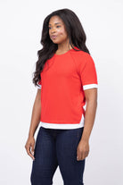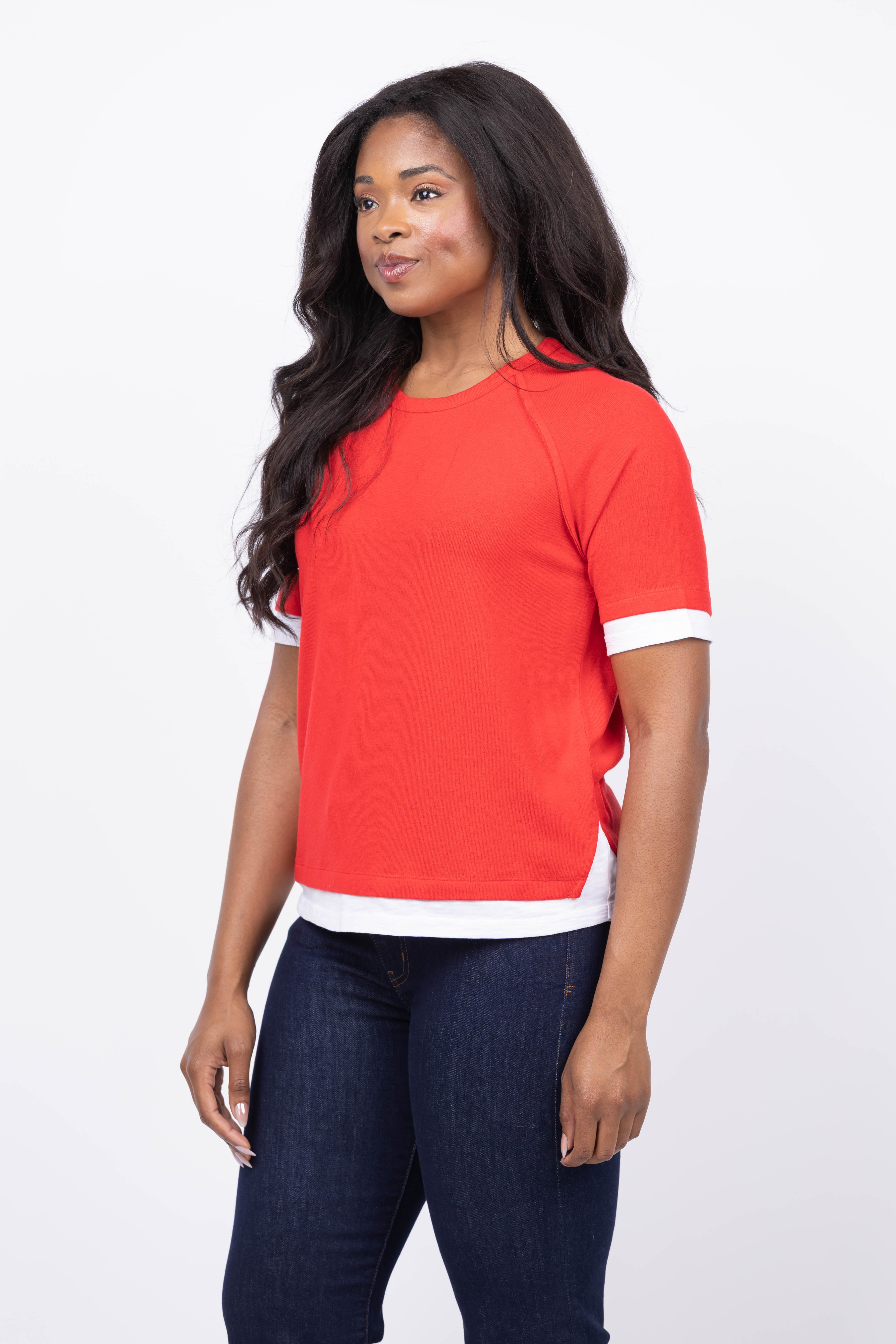 Design History Combo Short Sleeve Sweater in Prime Red Combo