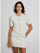 Design History Crewneck Short Sleeve Cardigan in Canvas