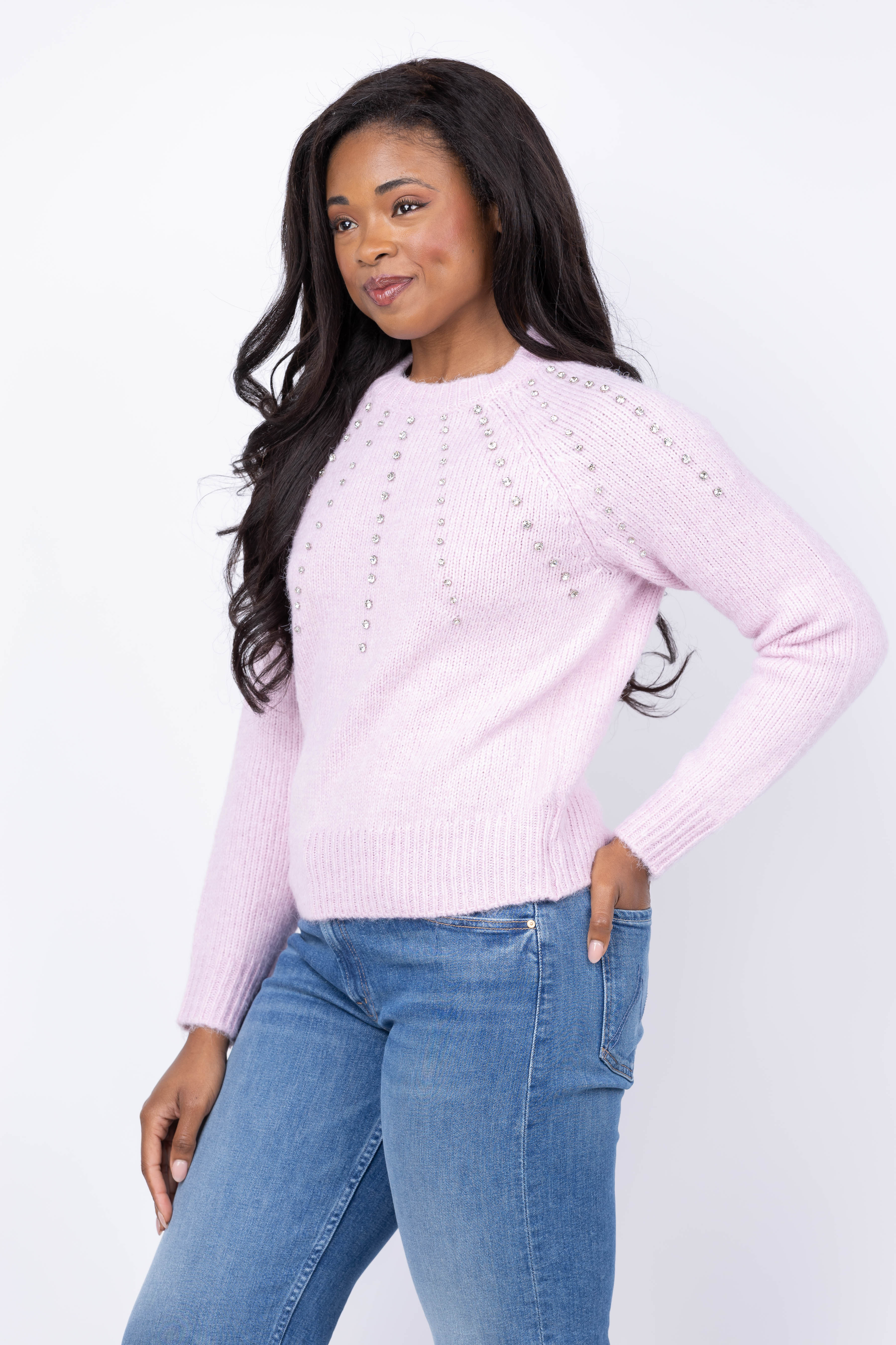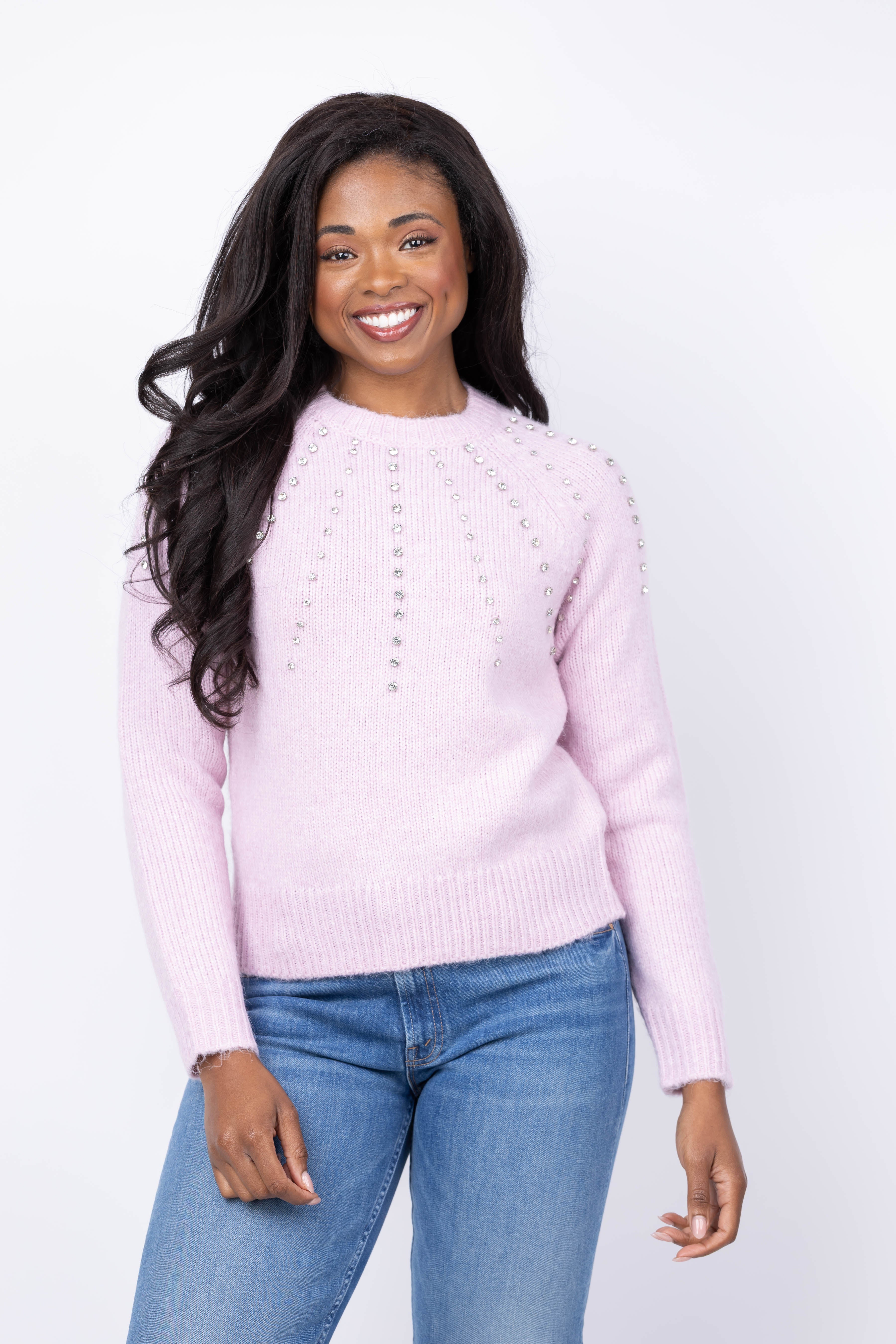 Captivate with this Design History Rhinestone Sweater in Lilac Snow. The soft, ethereal lilac snow hue creates a dreamy backdrop for sparkling rhinestone accents that add instant glamour. This sweater strikes the perfect balance between cozy comfort and eye-catching elegance, making it versatile enough for casual gatherings or more polished occasions. The rhinestones are thoughtfully placed to create visual interest and movement, ensuring you'll turn heads wherever you go. Layer it for depth or wear it solo for maximum impact. A luxurious piece that proves you don't have to choose between feeling fabulous and staying comfortable.