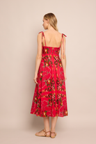 The Cara Cara Sunray Dress in Gemma Scarf Pink offers a flattering fit-and-flare silhouette with its midi-length circle skirt and ruched bodice. Featuring a sweetheart neckline and elasticated smocking at the back for comfort, this dress combines style with ease. Functional spaghetti straps with unique gold bead accents and side seam pockets add thoughtful details, while boning at the bodice ensures a structured shape. Fully lined in soft cotton voile, it provides breathable comfort with a beautifully placed print for a charming look that stands out.