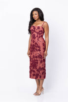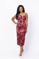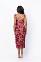 The Helsi Gemma Dress in Merlot exudes timeless sophistication with its impeccably tailored design. A structured bodice provides confident support and definition, while shimmering floral sequin embroidery catches the light with every movement. The fitted silhouette hugs your curves beautifully, enhanced by full lining for comfort and opacity. A graceful center back slit adds movement and allure to the skirt, while the center back zipper closure ensures a smooth, refined finish. An ideal choice for elevated occasions where understated glamour speaks volumes.