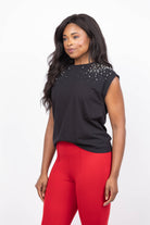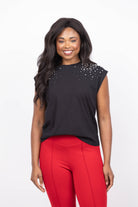 Elevate your style with the Ramy Brook Amelia top in Black, featuring cascading faux pearls and sparkling rhinestones that add depth and glamour. This sleek and modern design effortlessly enhances casual days or transforms your look for a night out, making it a versatile must-have for any wardrobe.