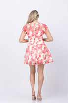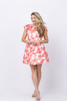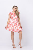 The Shoshanna Everlie Dress in Coral/Pink/Ivory is a charming mini dress that effortlessly blends elegance and playfulness. Its multi-color floral lace, high round neckline, and short flutter sleeves create a delicate, feminine look. The fit-and-flare silhouette with a full skirt flatters every figure, while the sheer top bodice yoke adds a touch of allure. Fully lined except for the sheer yoke, and featuring a hidden back zipper for a seamless finish, this dress is perfect for making a memorable impression at any occasion.