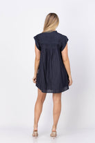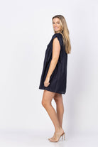 The We Are Sundays Rue Dress in Navy offers a chic blend of New York style and a modern babydoll silhouette. Featuring delicate pintucking on the front and back yoke, this dress adds subtle texture and visual interest. Rolled sleeves contribute a relaxed, effortless vibe, while the gathered bodice creates an a-line shape that flows gracefully to mid-thigh. Designed with an oversized fit, Rue invites you to size down for a more tailored look. Perfect for elevating your everyday wardrobe with understated elegance.
