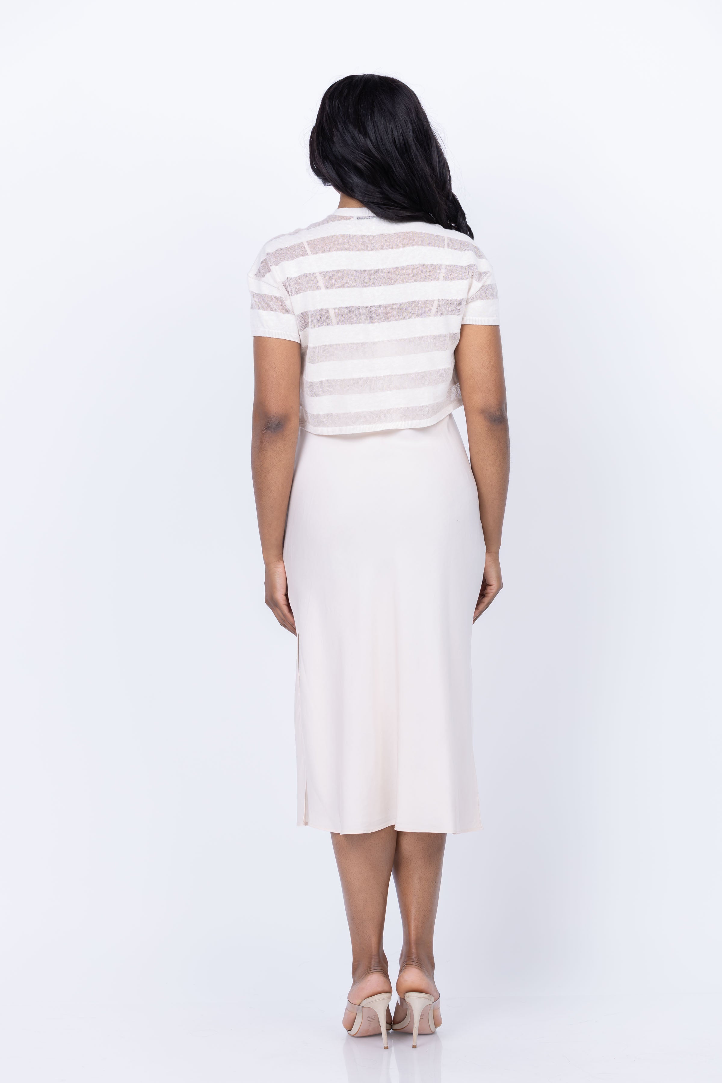 Indulge in versatile style with the DH New York Avi Sweater Dress Combo in Oatmeal Combo. This stunning piece features a striped short-sleeve cardigan and classic midi-length slipdress. With a crewneck and button-front closure, this dress is perfect for any occasion. Elevate your wardrobe and feel effortlessly chic in this must-have combo!