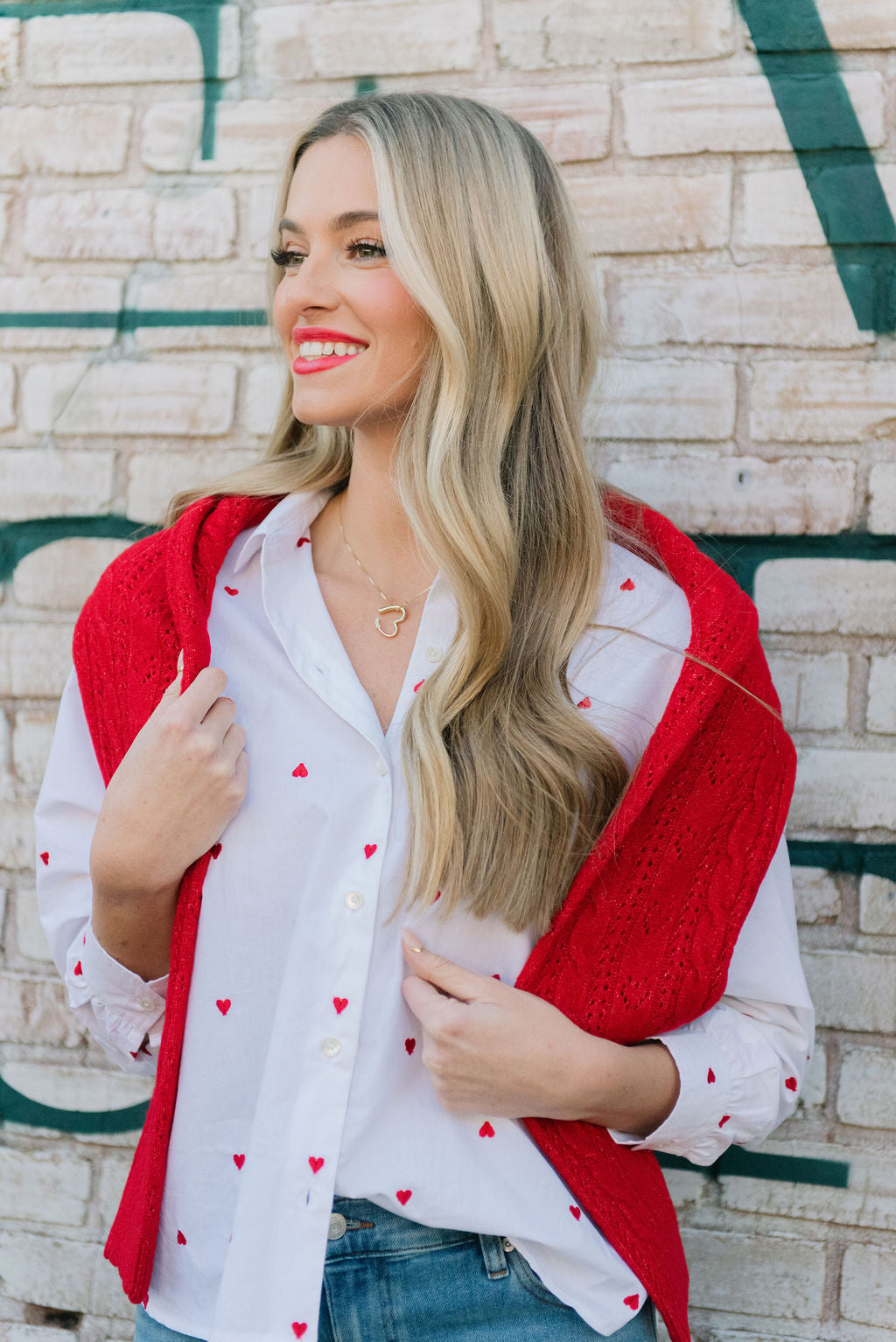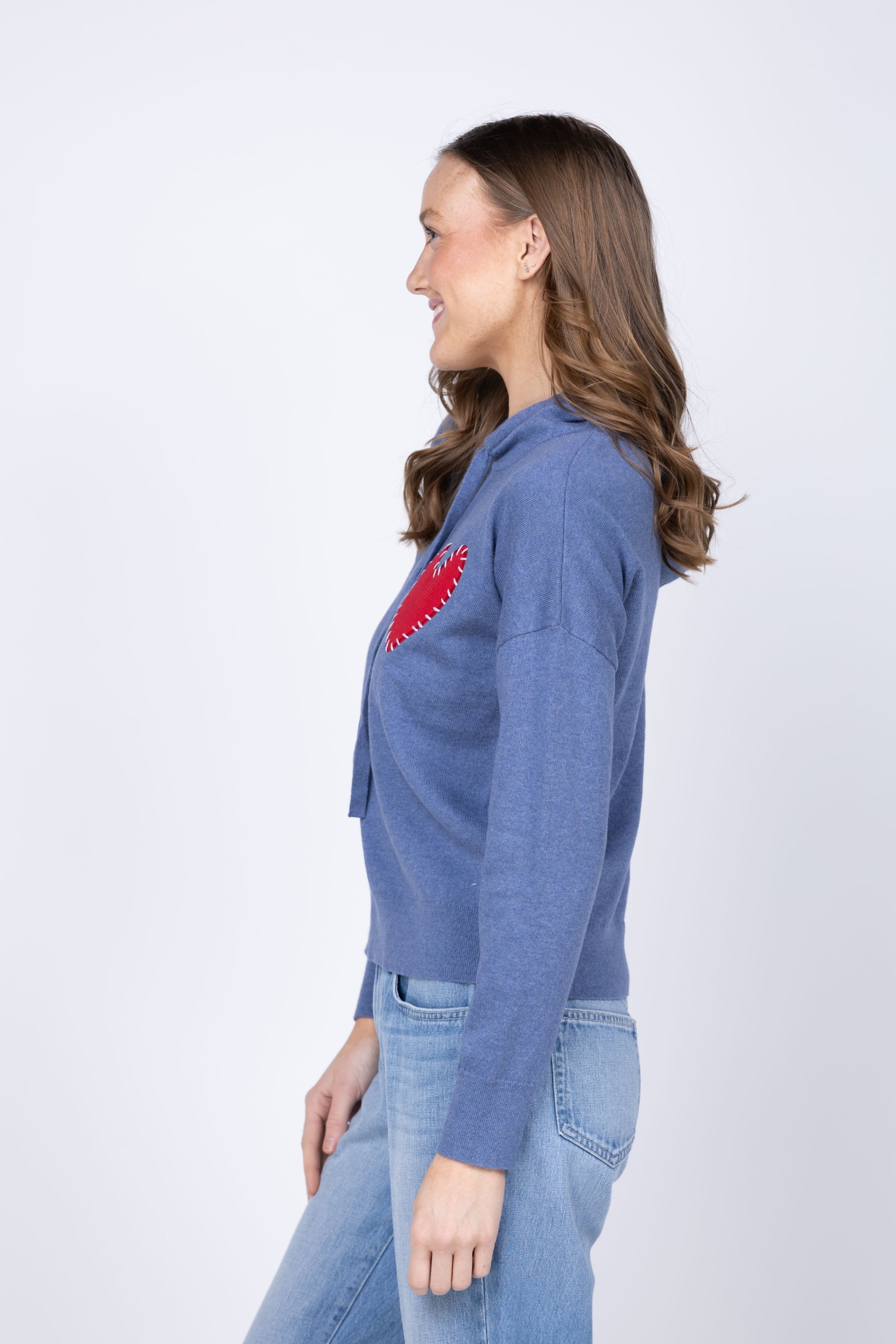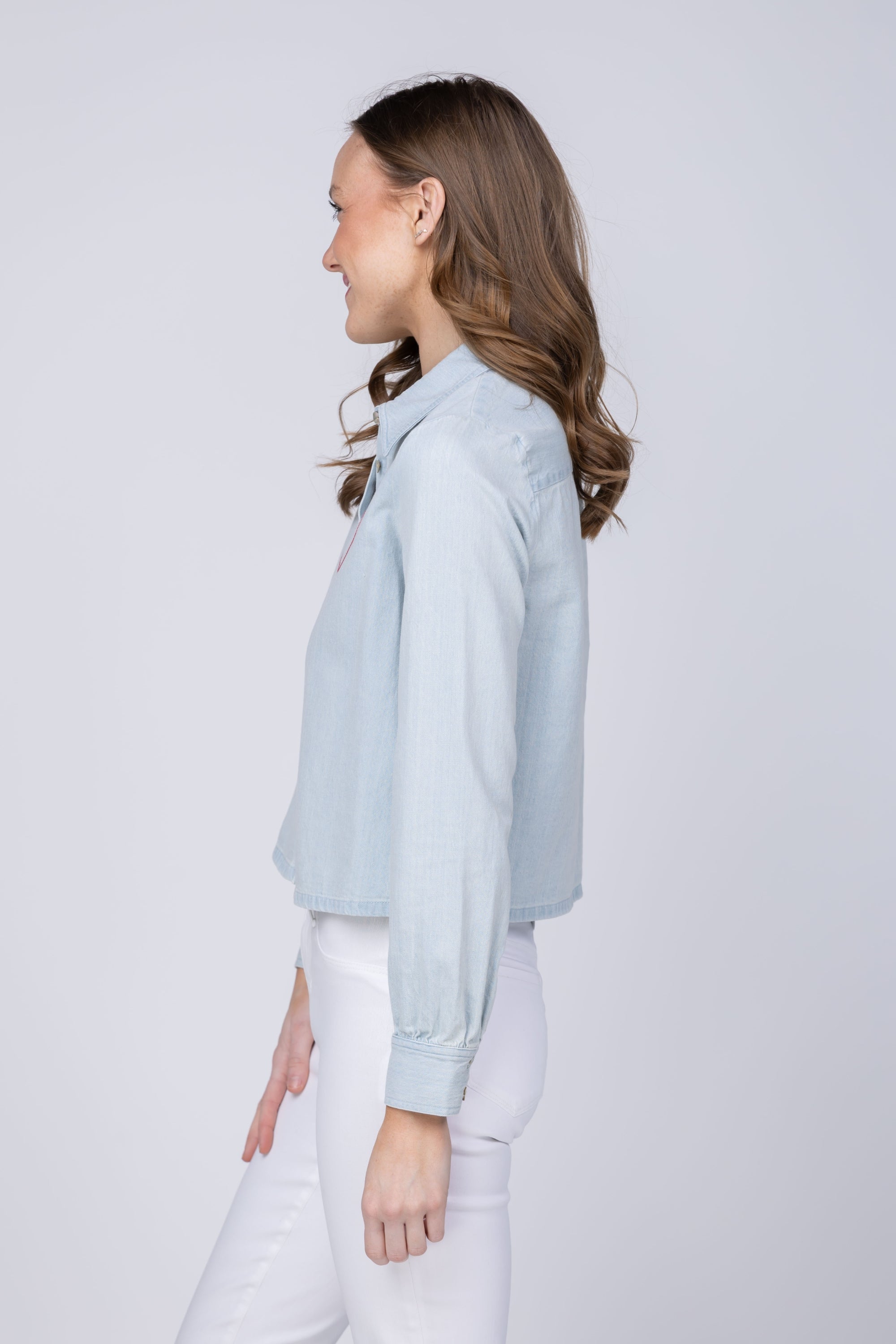 J. Society Cropped Embroidered Heart Shirt in Chambray