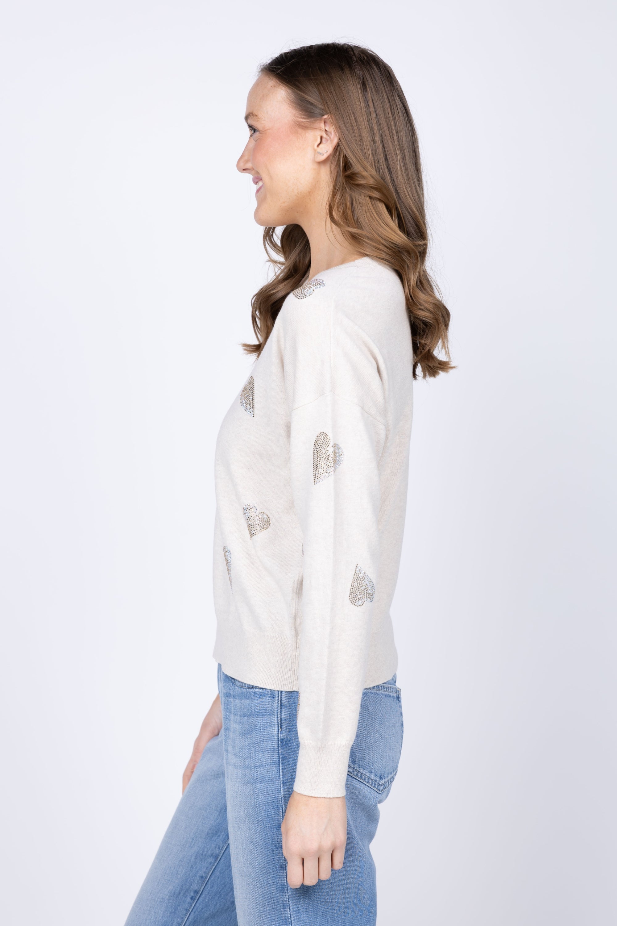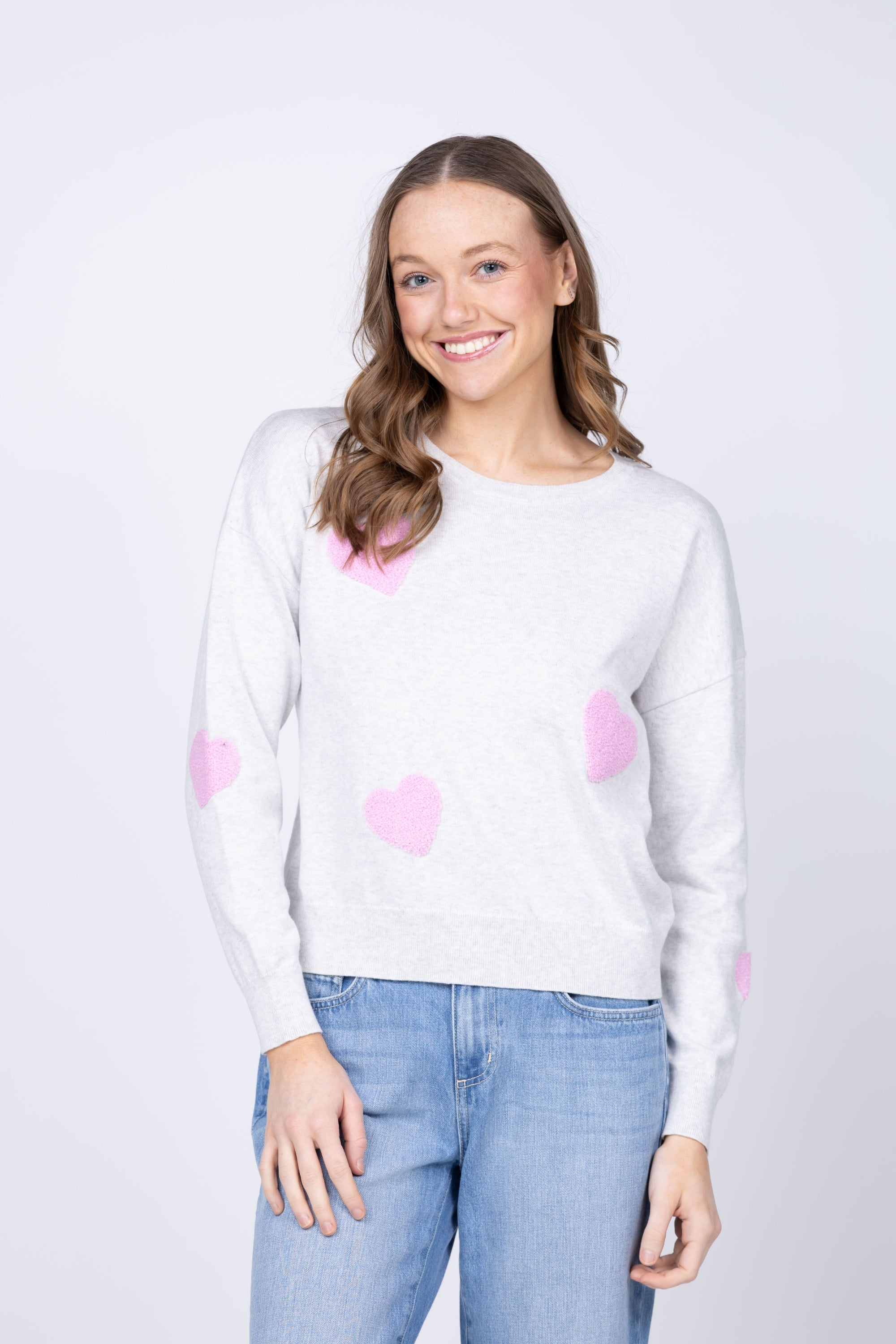 J. Society All Over Hearts Sweatshirt in Cloud/Bubblegum