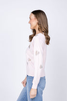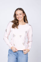 Capture hearts with this enchanting J. Society Glitter Heart Top in Ballet. Delicate glitter detailing creates a shimmering heart design that catches the light beautifully, making it perfect for special occasions or everyday glamour. The soft ballet hue offers a romantic, sophisticated aesthetic that pairs effortlessly with your favorite bottoms. Whether you're dressing up for an event or adding sparkle to your casual wardrobe, this top delivers eye-catching style with undeniable charm. A must-have piece for anyone who loves feminine, statement-making fashion.