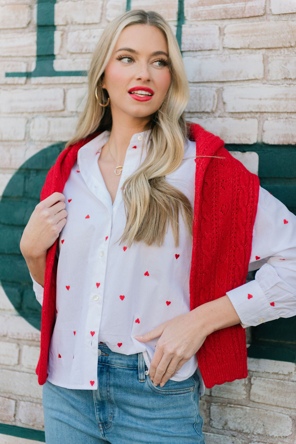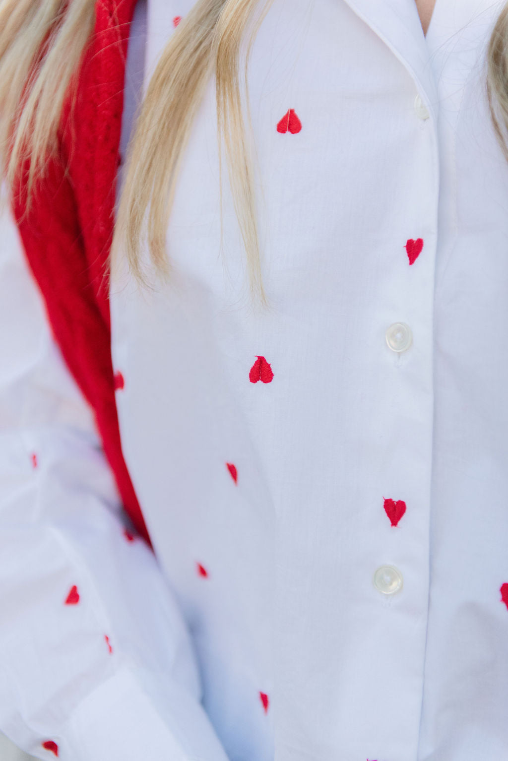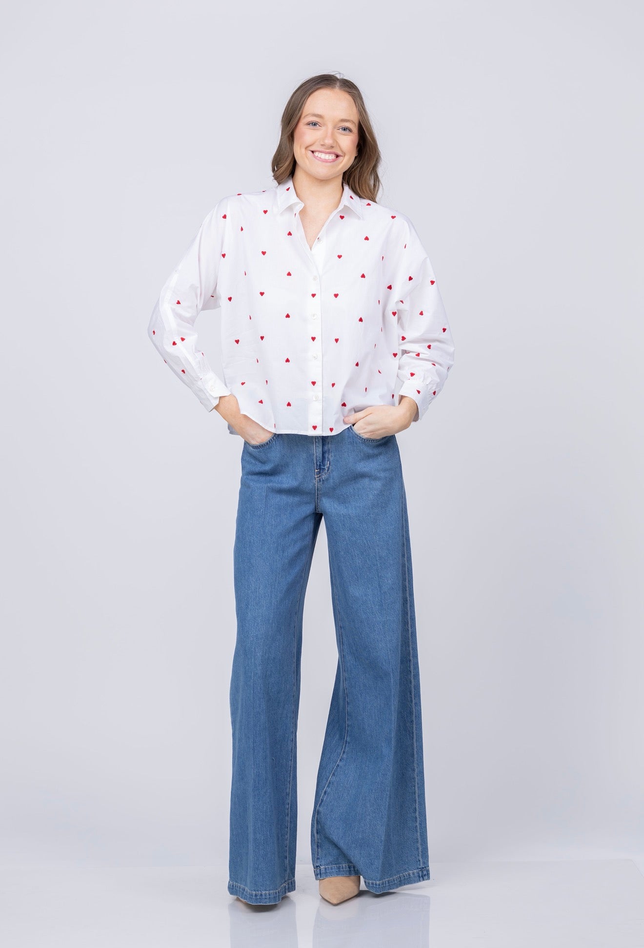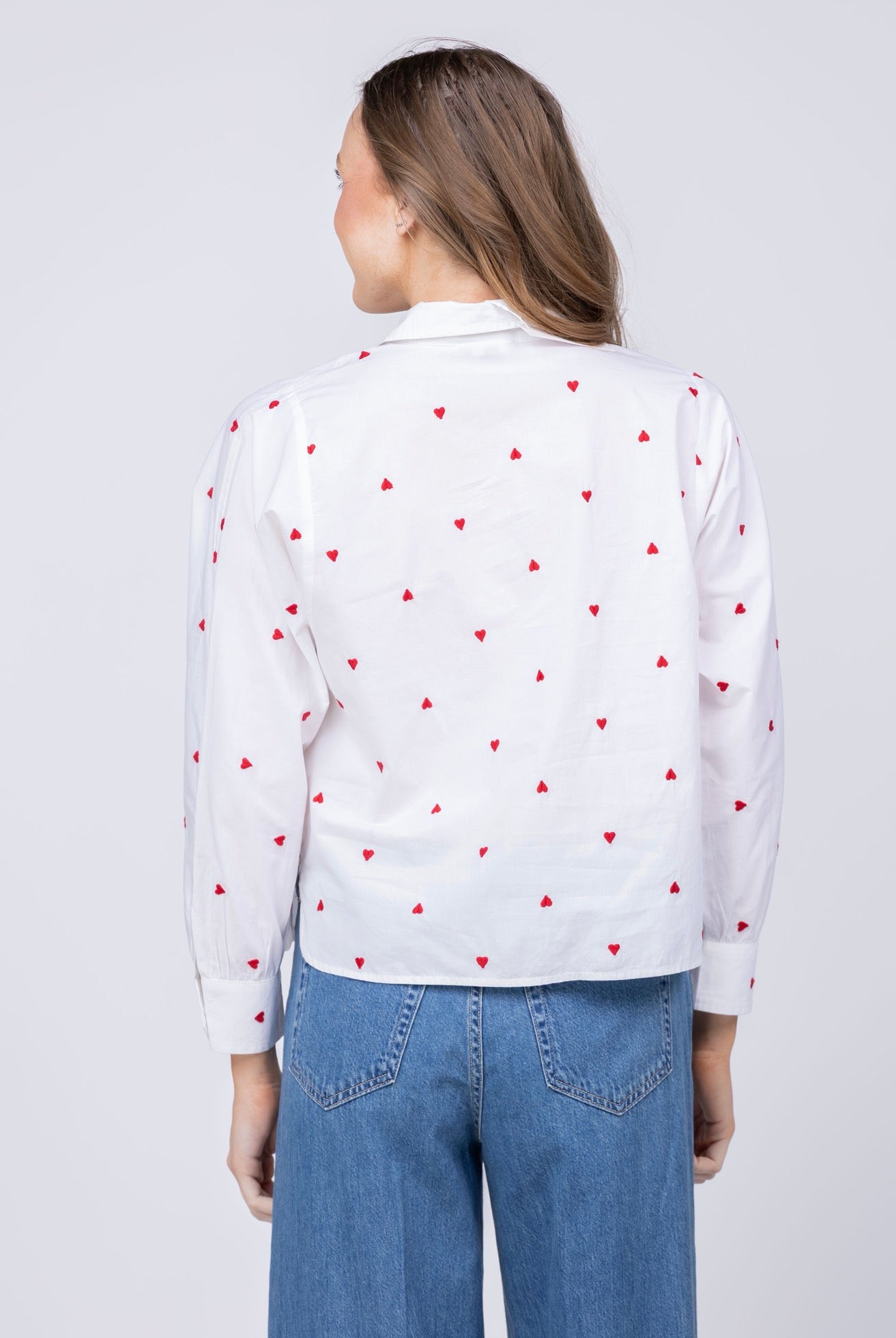 Elevate your everyday wardrobe with this charming Lilla P button-down, featuring delicate embroidered hearts that add a touch of romantic sophistication. Crafted in crisp white, it's the perfect piece for layering or wearing solo—versatile enough for casual weekends yet polished enough for the office. The classic button-down silhouette flatters all body types, while quality construction ensures lasting wear. Whether you're dressing up with tailored trousers or keeping it relaxed with your favorite jeans, this timeless top brings effortless elegance to any outfit.