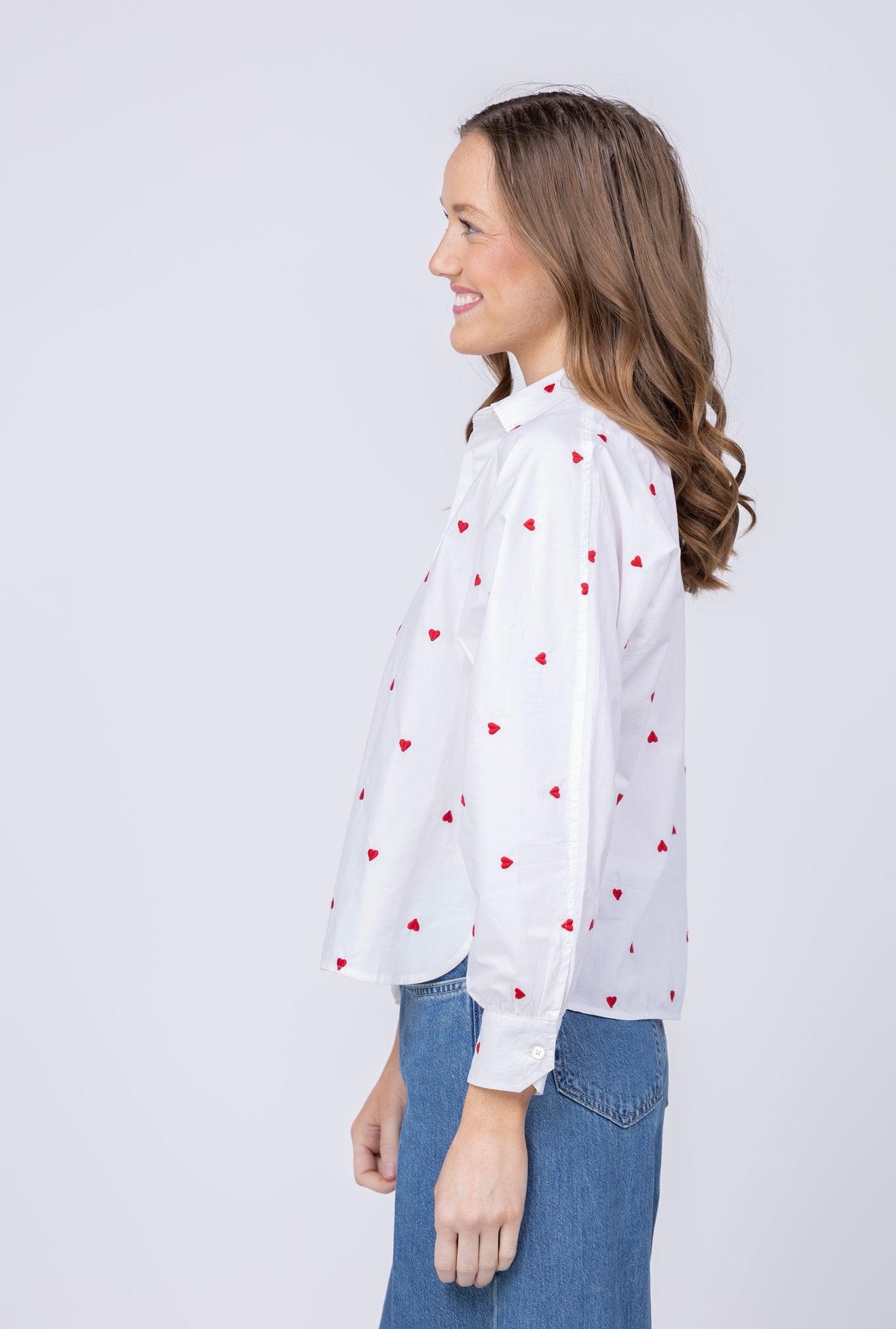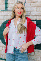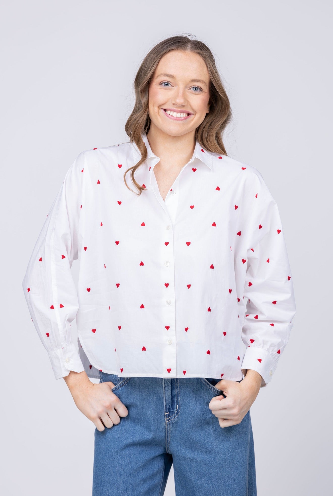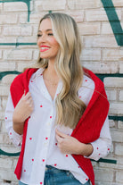 Lilla P Embroidered Hearts Button Down in White