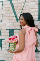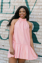 Elevate your evening with this stunning Hope Taffeta Bow Tie Mini Dress in Dusty Rose. The luxurious taffeta fabric catches light beautifully, while the flattering A-line silhouette skims your figure gracefully. A charming bow tie halter neckline and voluminous ruffled hem create an enchanting balance of sophistication and playful movement. Perfect for cocktail events, celebrations, or any occasion calling for effortless elegance. This dress transforms you into the most captivating person in the room.
