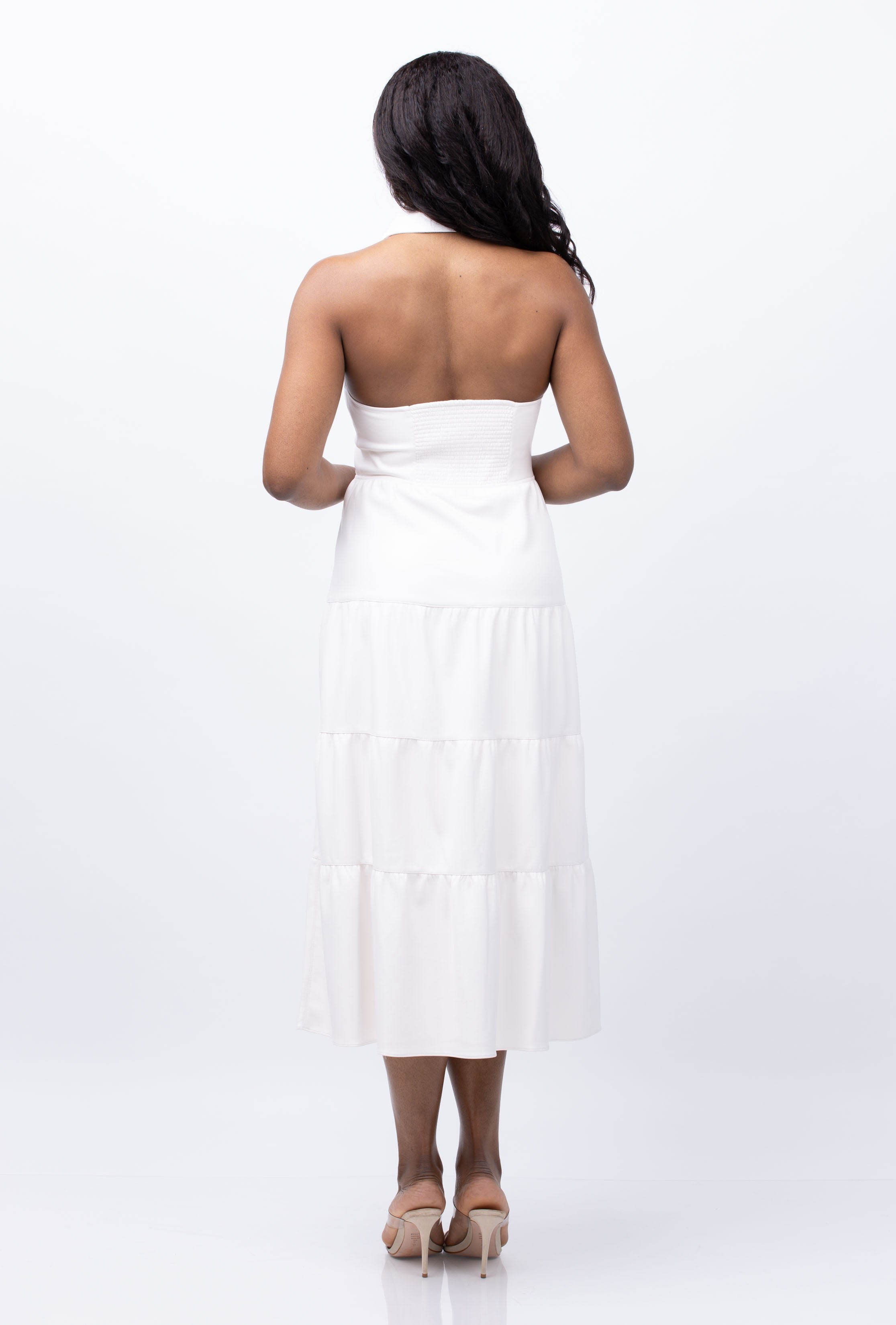 Alice + Olivia Miranda Faux-Leather Midi-Dress in Off White