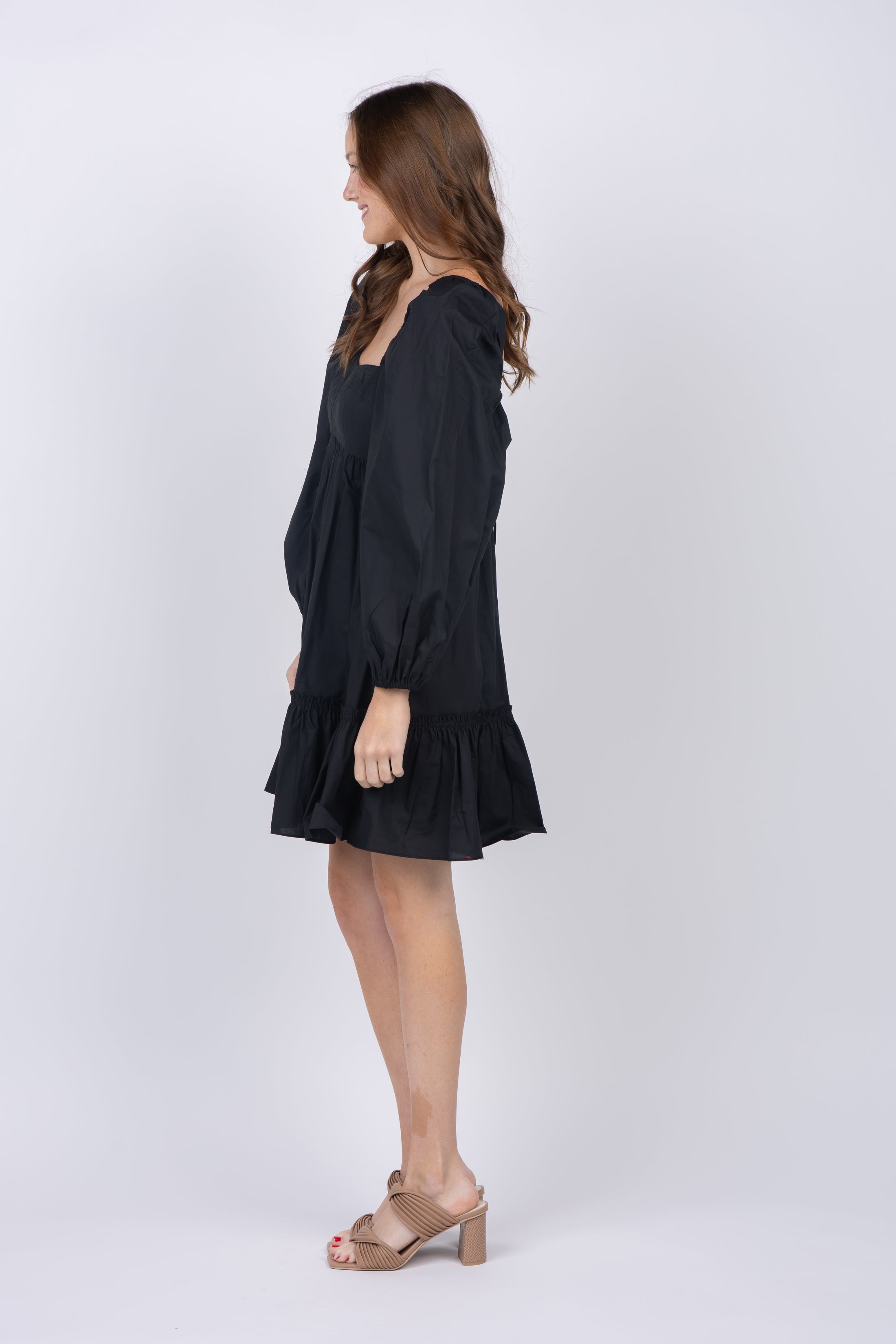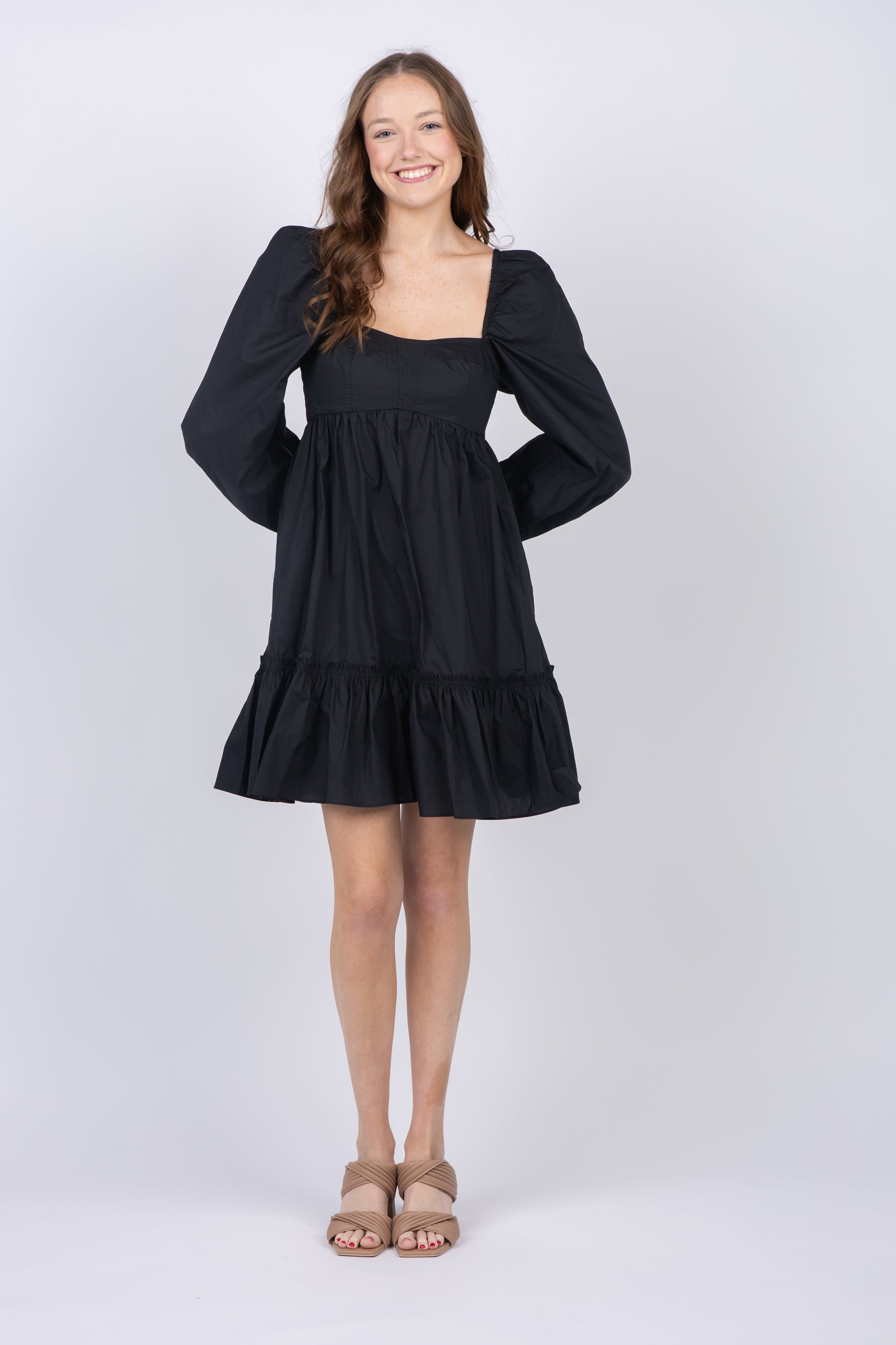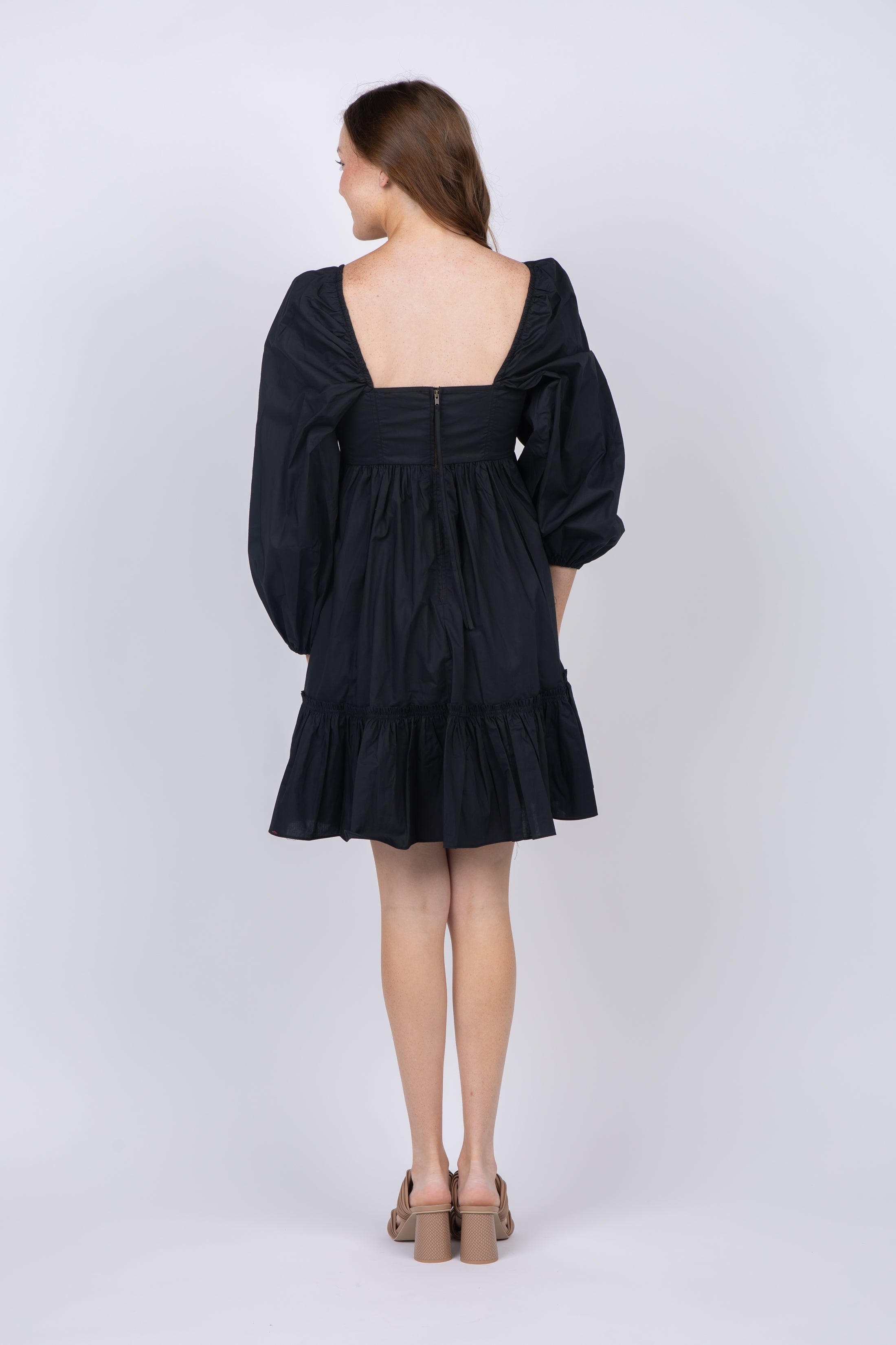 The Ulla Johnson Alita Dress in Noir is the perfect piece for making a statement. Crafted with luxurious cotton poplin, this mini dress features a flattering empire waist and a-line silhouette. Eye-catching topstitching and ruffle trim add a touch of drama to the bodice and hem, while long puff sleeves elevate the look. Make an unforgettable entrance in this head-turning style!