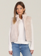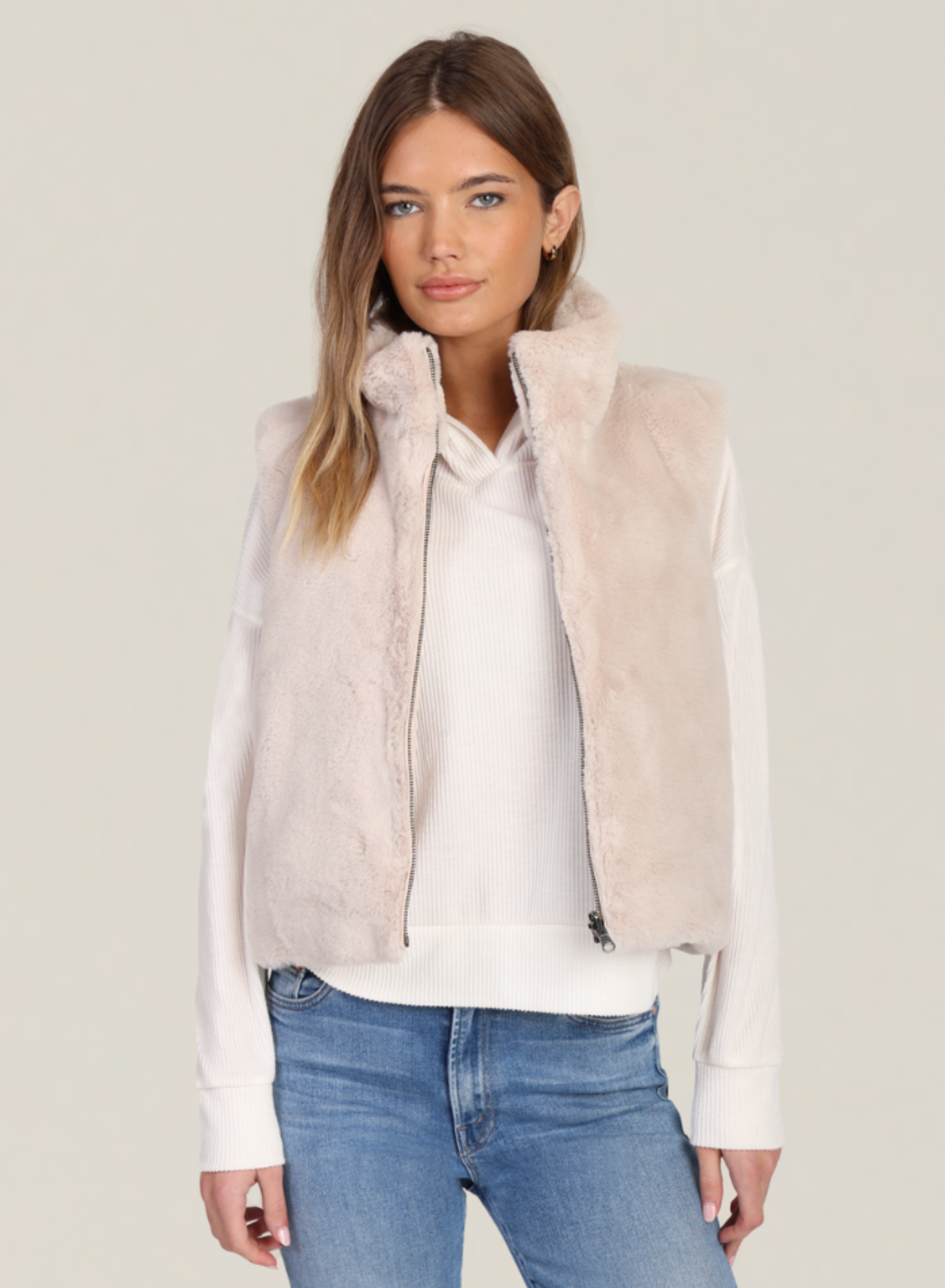 The Dylan Classic Fur Reversible Vest in Ecru offers effortless style and practical functionality. Its reversible design lets you switch up your look with ease, while the secure zipper front ensures a comfortable, snug fit. Equipped with handy pockets, this vest is perfect for layering, providing warmth and convenience for your daily wardrobe. Elevate your outfit with this versatile and stylish piece designed for both comfort and adaptability.