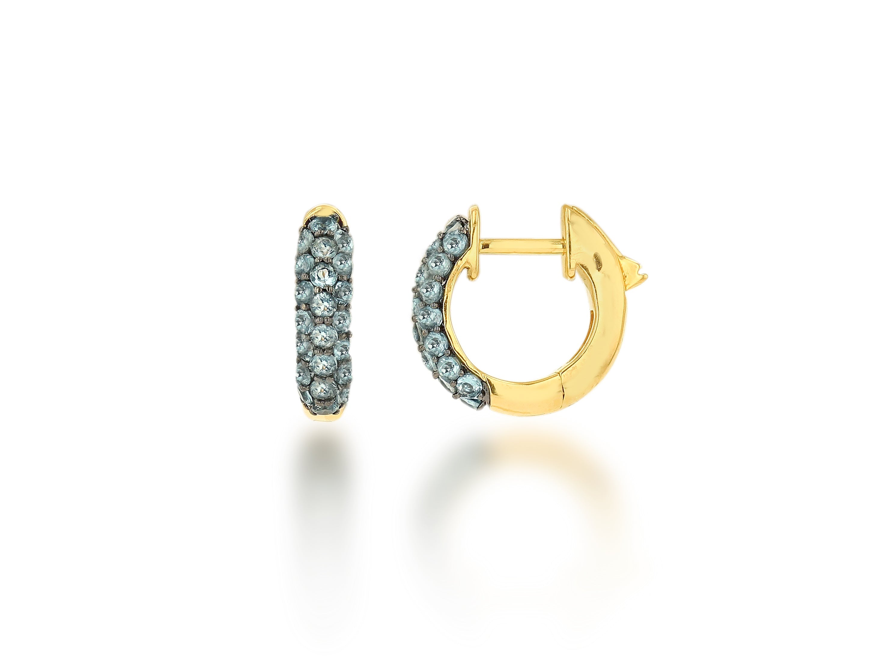 These exquisite Pave Gemstone Huggie Hoops feature stunning blue topaz stones set in luxurious 14k yellow gold, adding a vibrant touch to any outfit. Designed for everyday elegance, they hug your ears comfortably while sparkling brilliantly. For a personalized look, these hoops can also be special ordered in white or rose gold, making them a versatile and timeless addition to your jewelry collection. Elevate your style effortlessly with these captivating earrings.