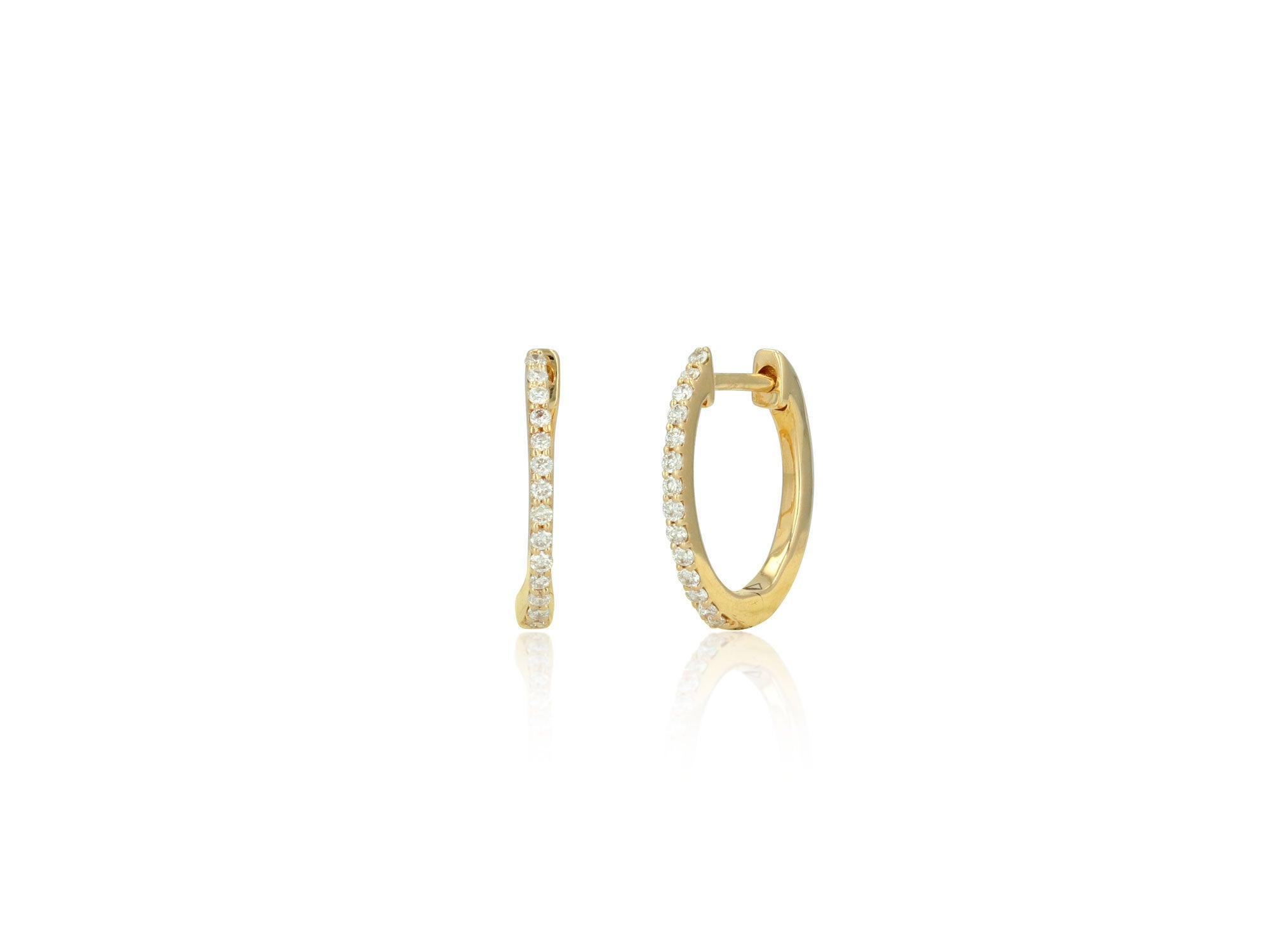 Introducing the elegant and versatile Huggie Diamond Earring in Gold! Our Pave Diamond Huggie Earrings, available in 14k white and yellow gold, offer both luxury and comfort. These must-have earrings are a timeless addition to any fine jewelry collection, perfect for any age and occasion. Secure snap post closures.