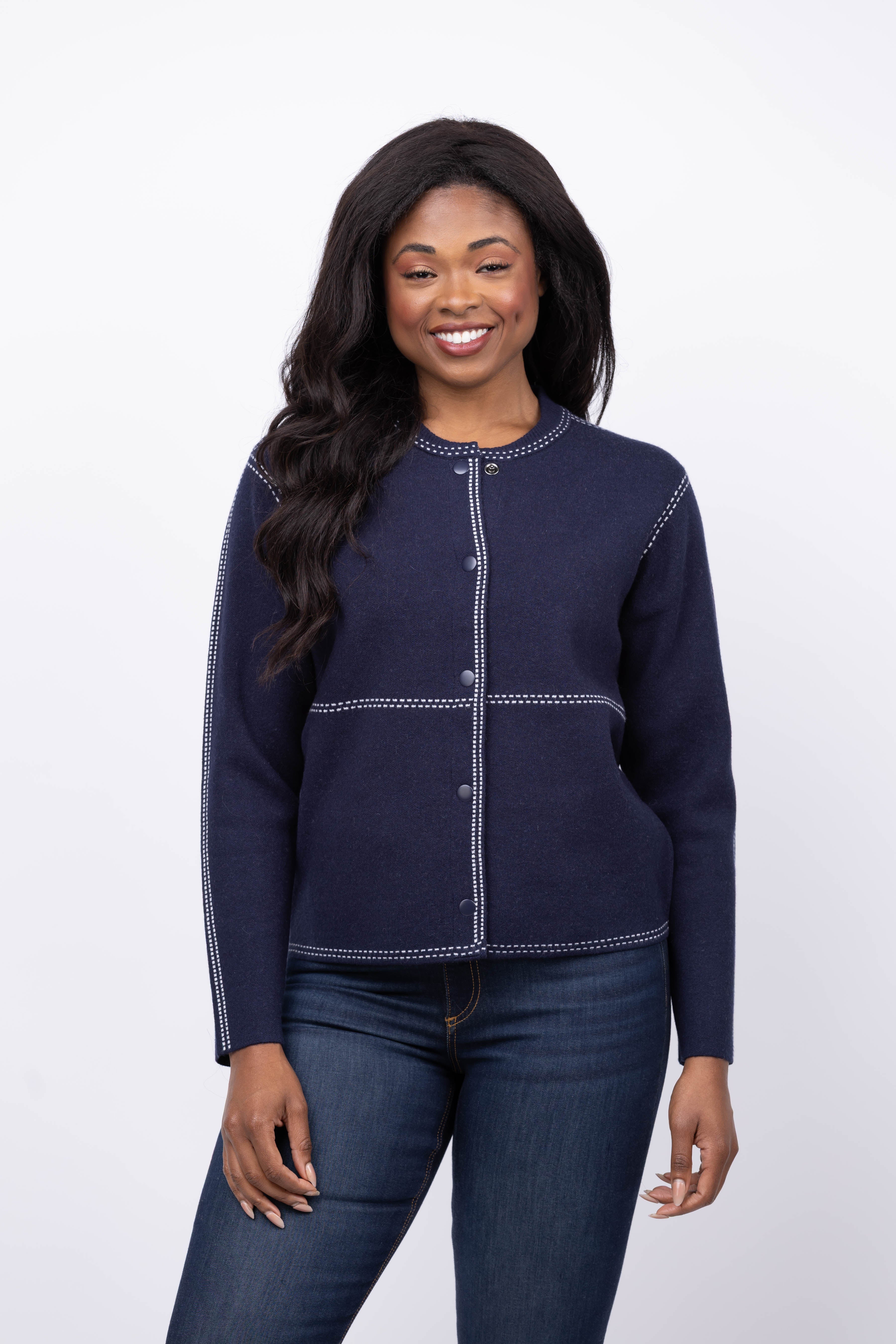 Elliott Lauren Stitched Sweater Jacket in Navy