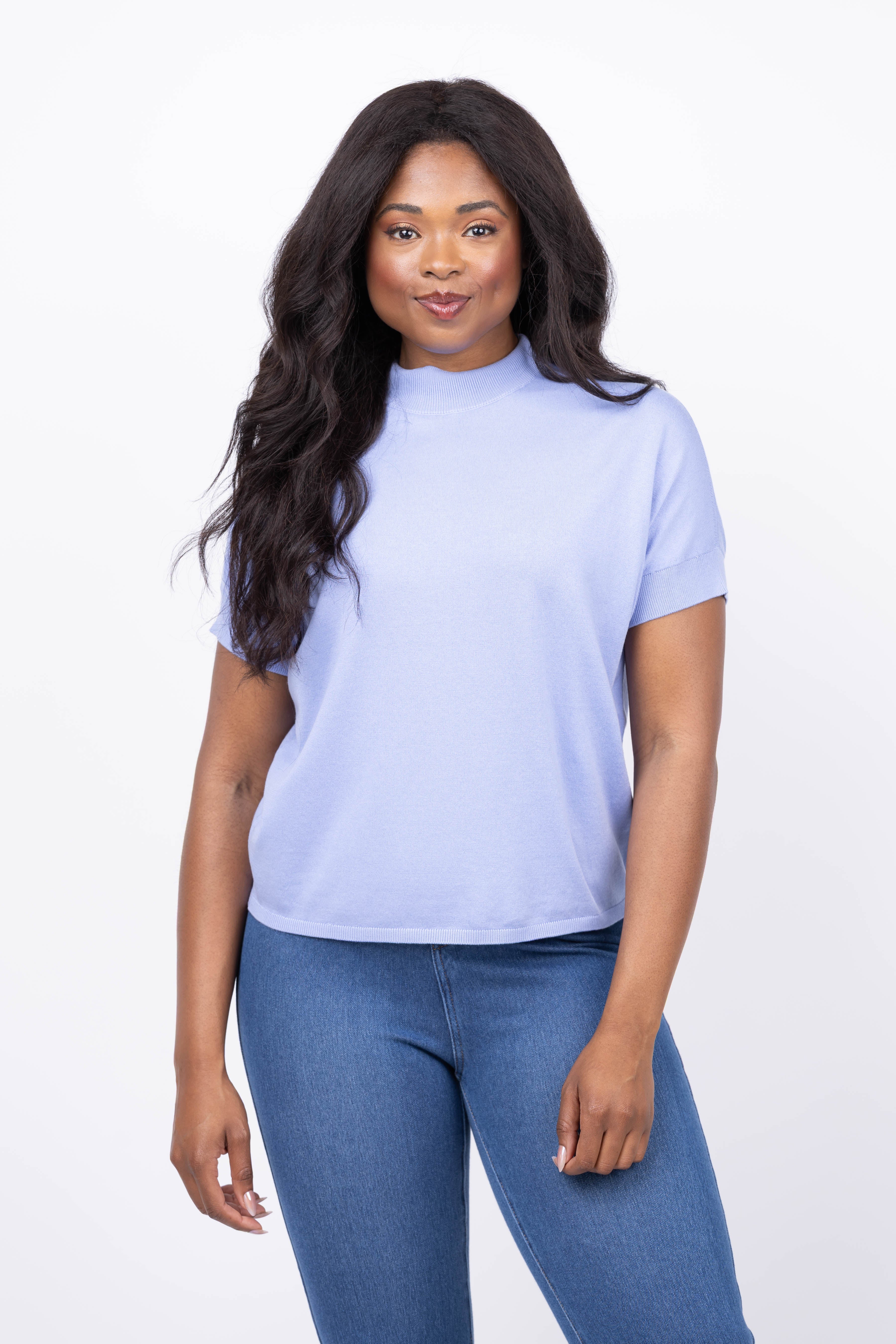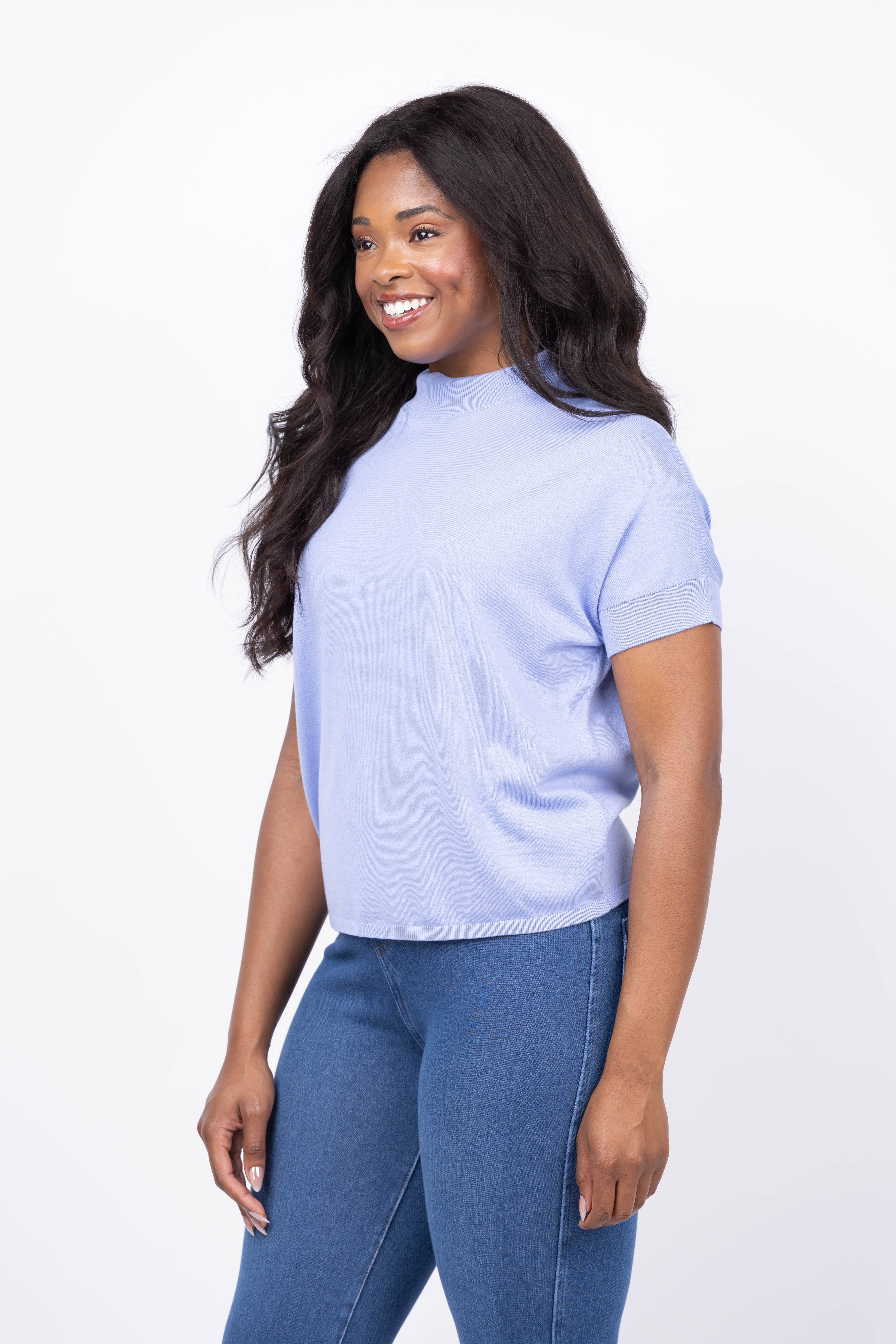 Elliott Lauren Short Sleeve Mockneck Sweater in Iris