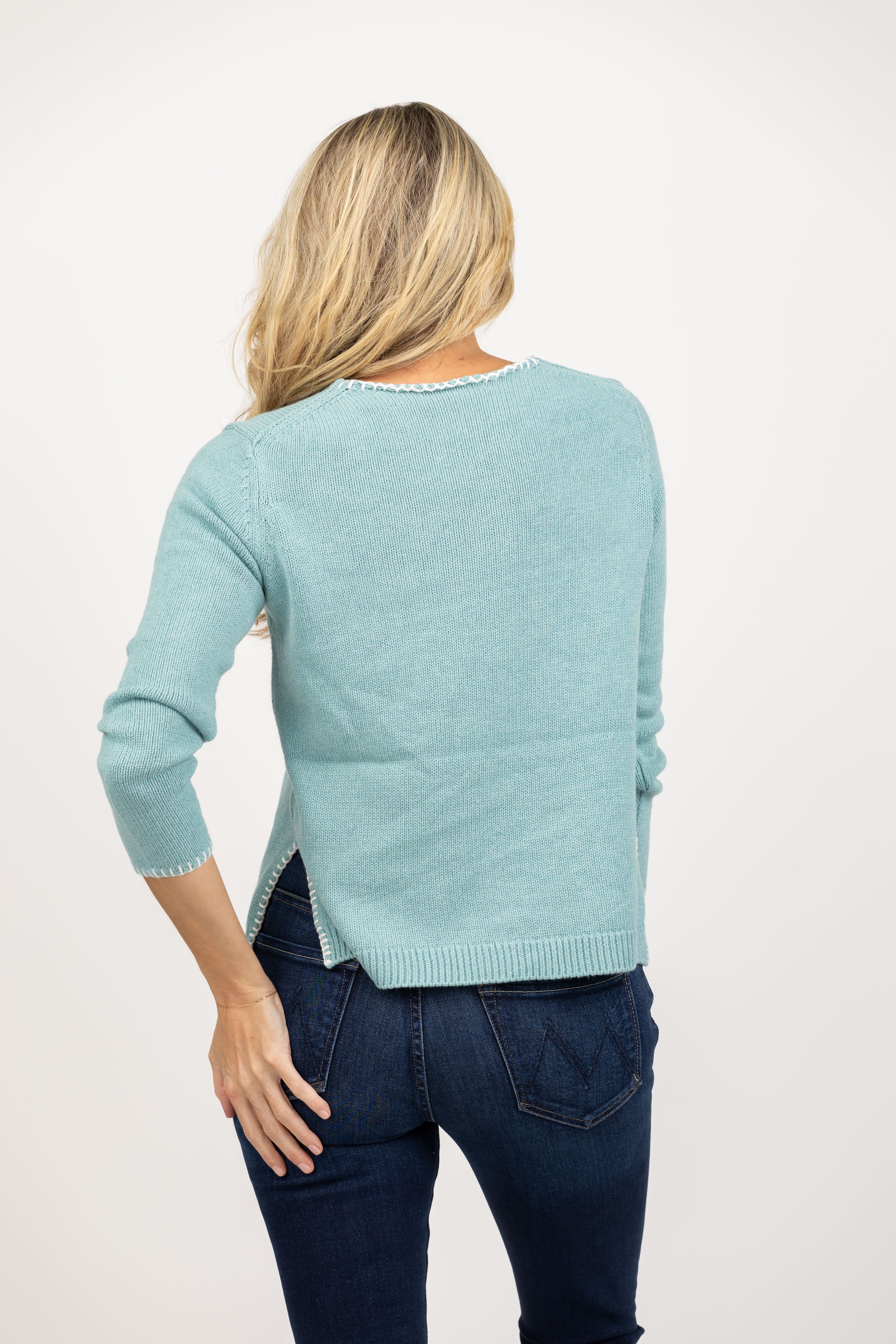 Elliott Lauren Crew With Stitching in Sea Glass