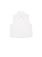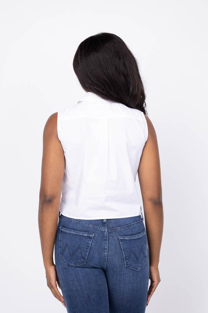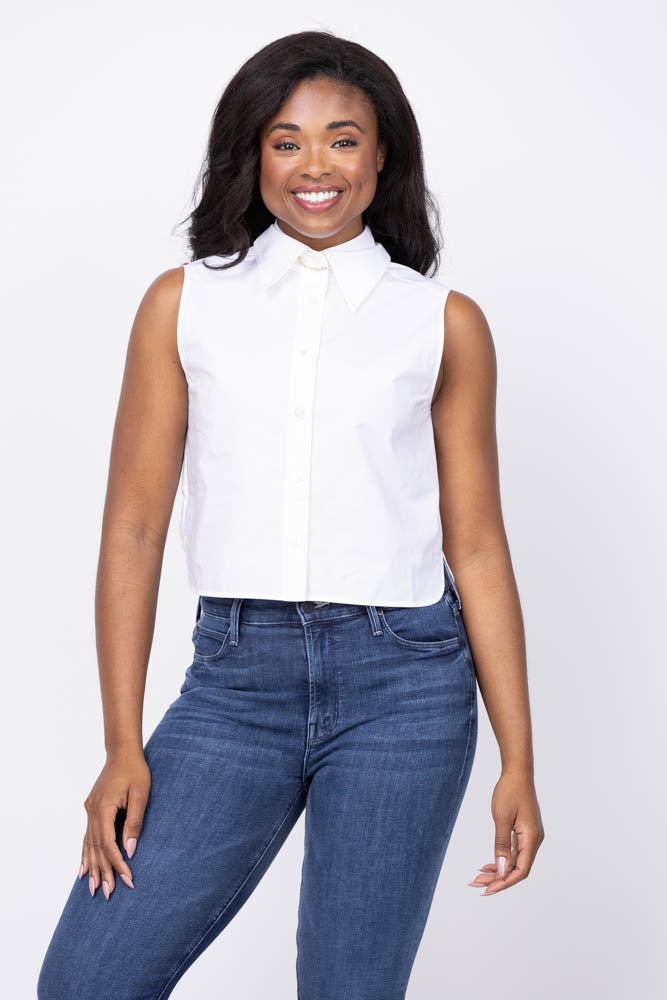 This cotton poplin shell redefines a classic with a removable gold chain at the neckline, adding a subtle vintage-inspired touch. Featuring a shirttail hem, back pleating, and an elongated collar, the Frame The Prep Shirt in White offers a polished yet modern look perfect for elevating any outfit.