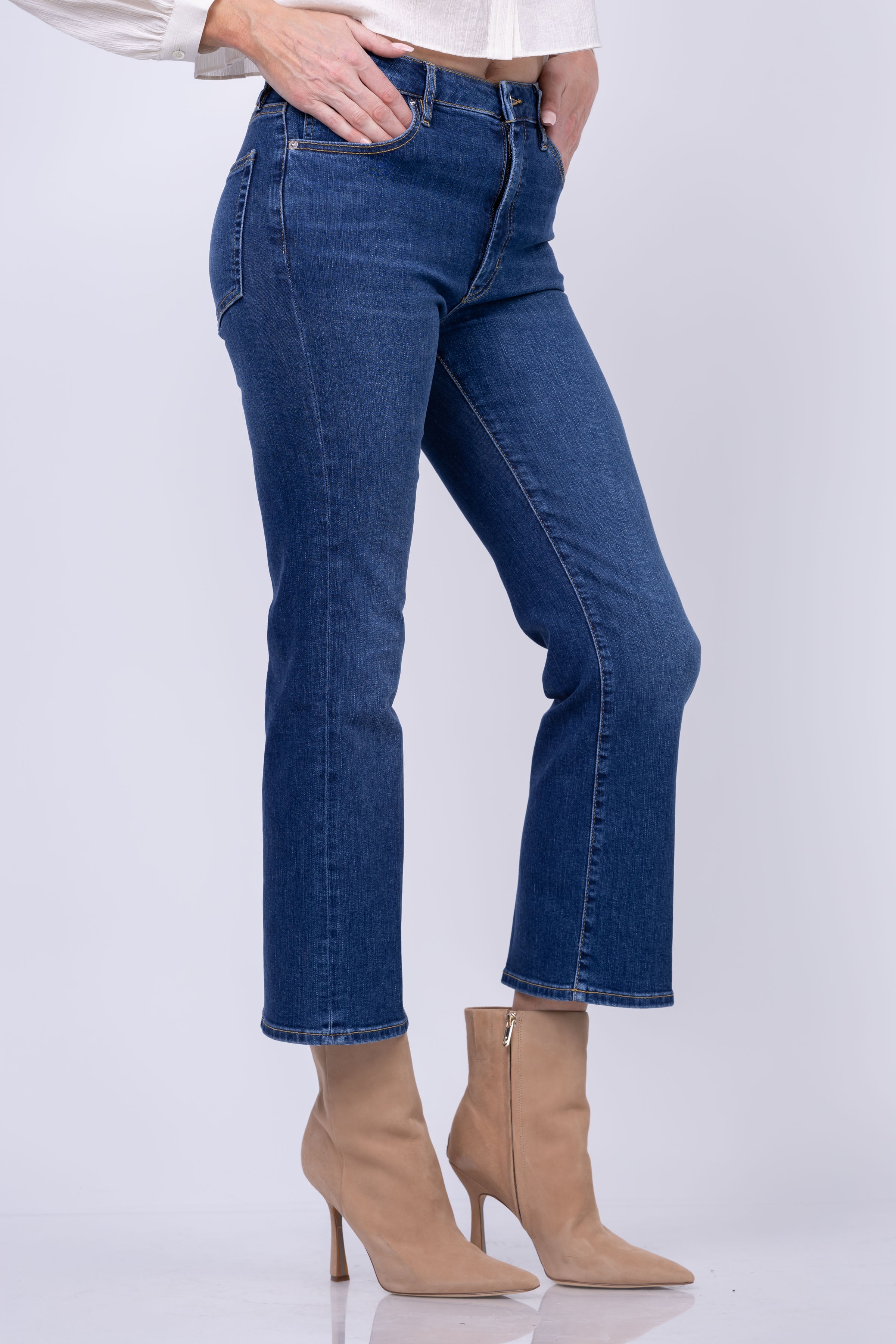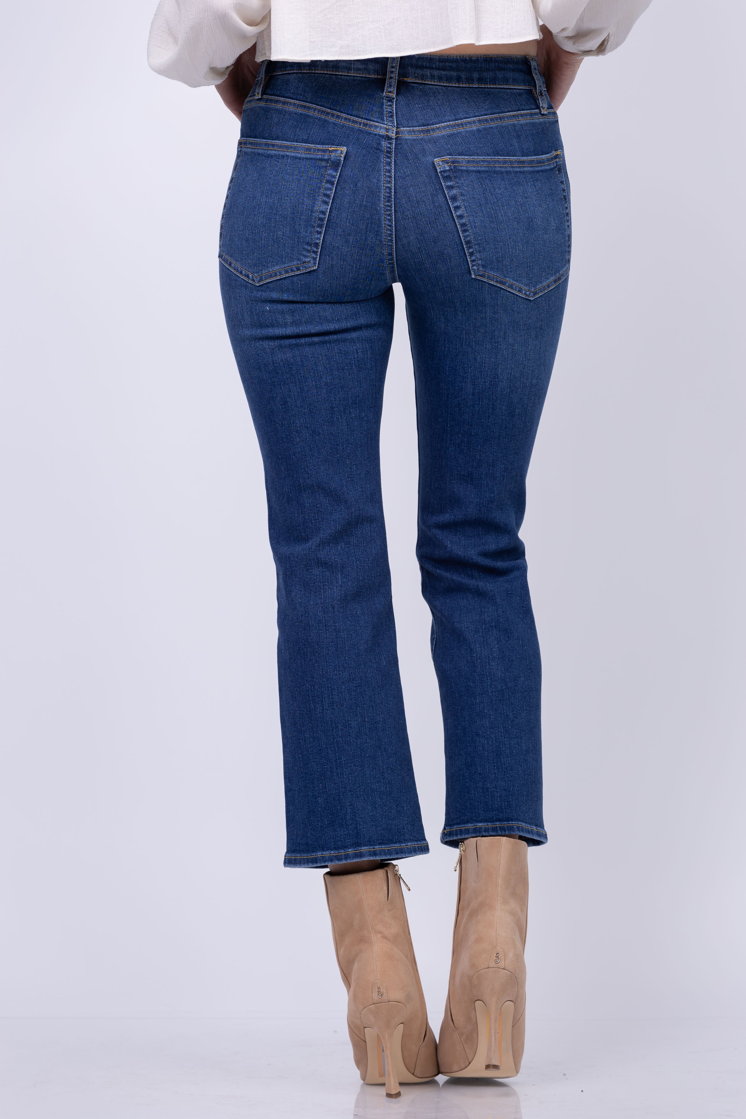 Revitalize your denim collection with the Frame Reboot Crop in Femma. This chic jean features a cropped inseam and soft bootcut, hitting at the perfect above-ankle length. Made from an ultra stretchy cotton blend, these jeans offer both style and all-day comfort. Elevate your wardrobe with this must-have piece.