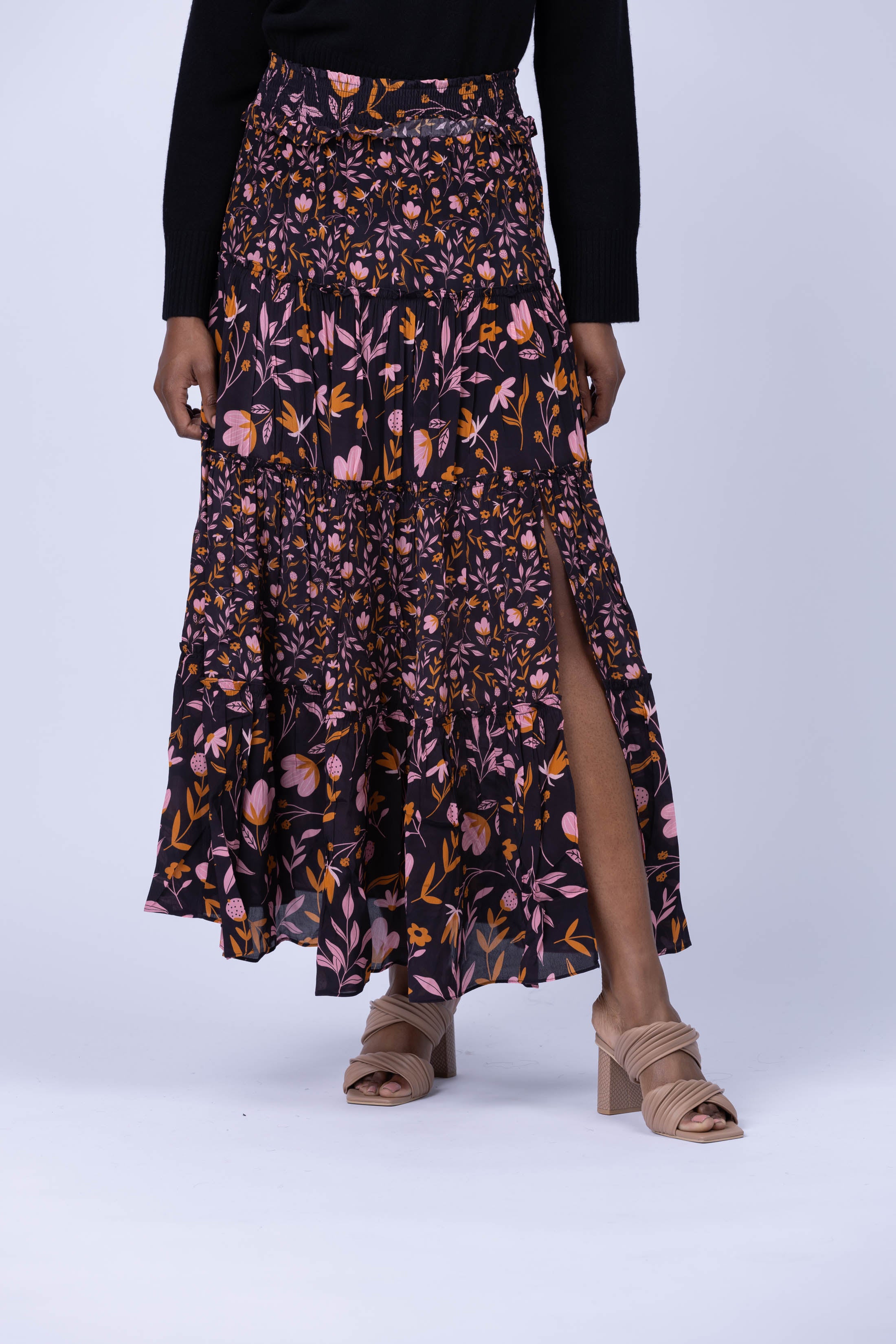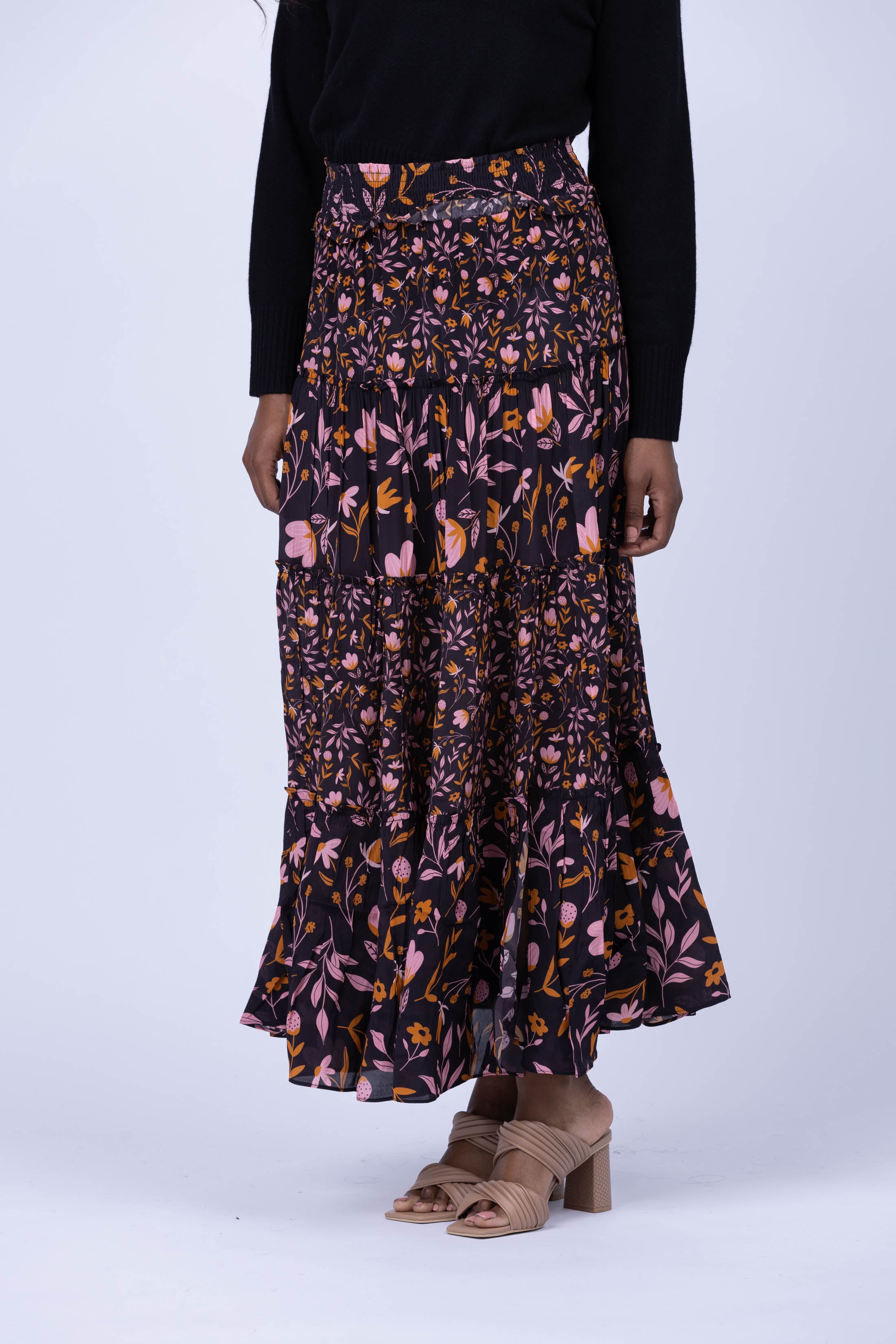 Unleash your feminine spirit in the Gilner Farrar Andra Skirt! This stunning maxi skirt features a distinctive cascading floral print and a smocked waistband for a beautiful silhouette. The front slit adds a touch of drama and facilitates movement, letting you take on the day with grace and poise!