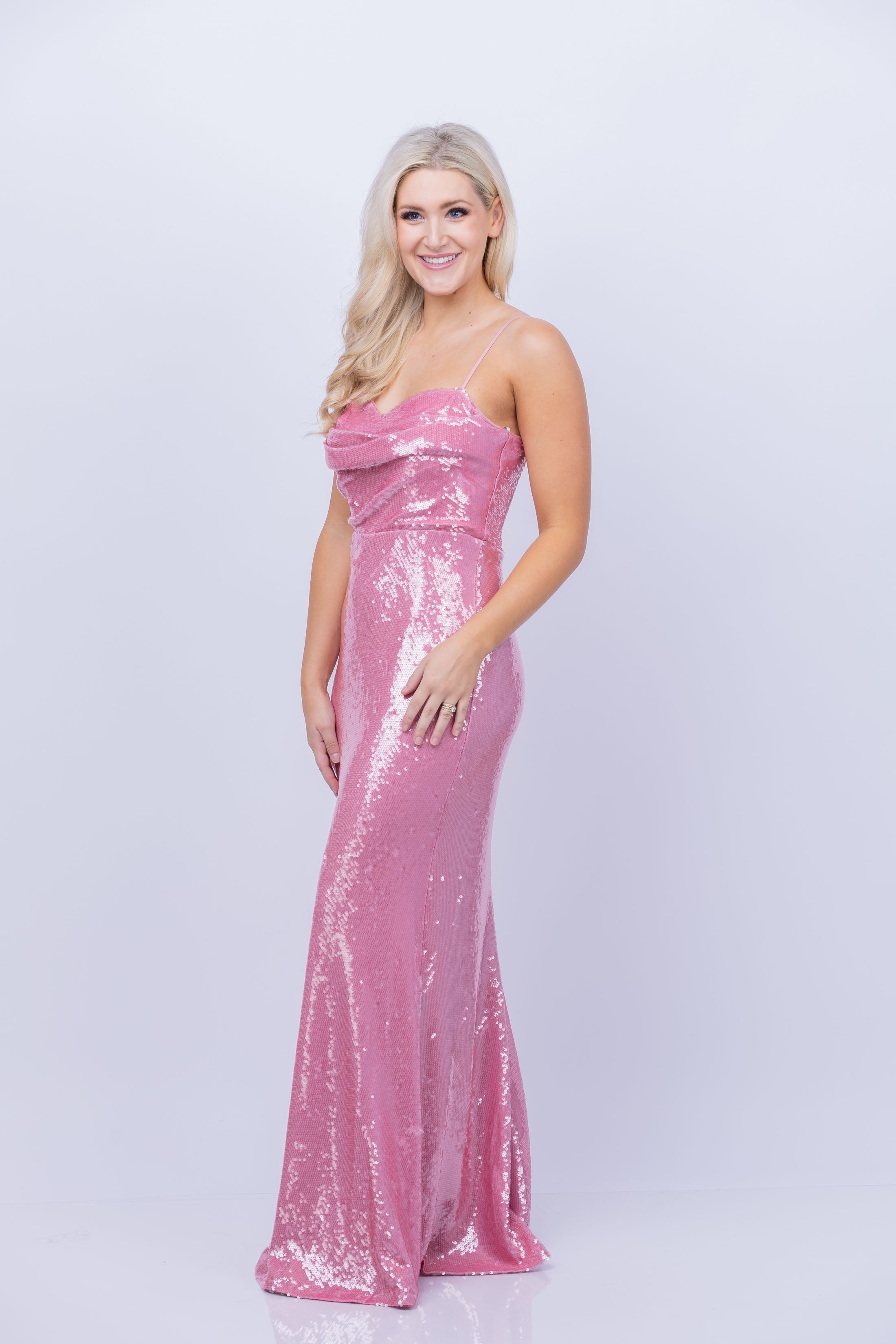 Elevate your style with the ML Monique Lhuillier Dress in Soft Orchid. The spaghetti stripes and full-length skirt exude elegance, making the Marisol Sequins Long Dress a total stunner. Perfect for any special occasion, this dress is sure to make a lasting impression.