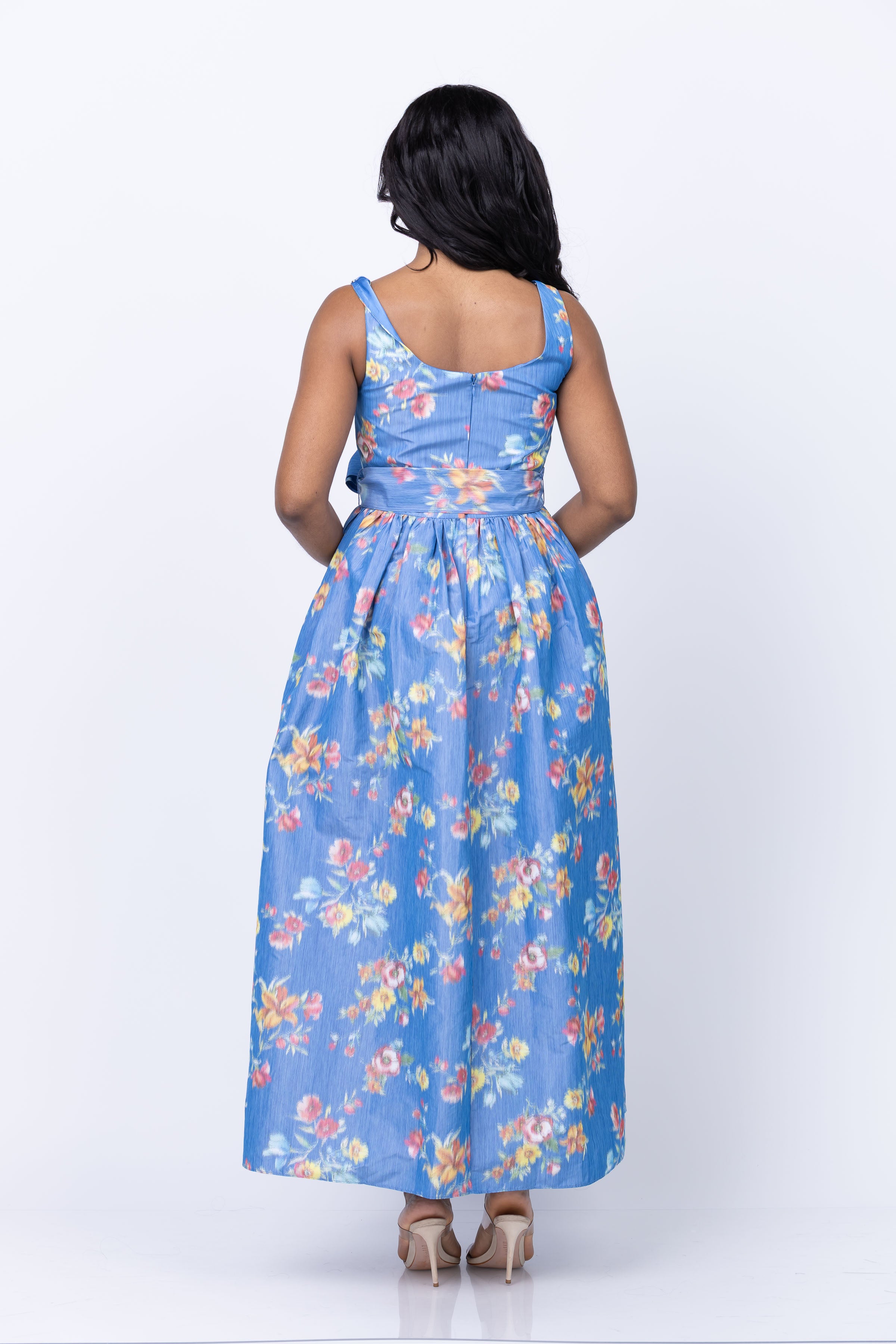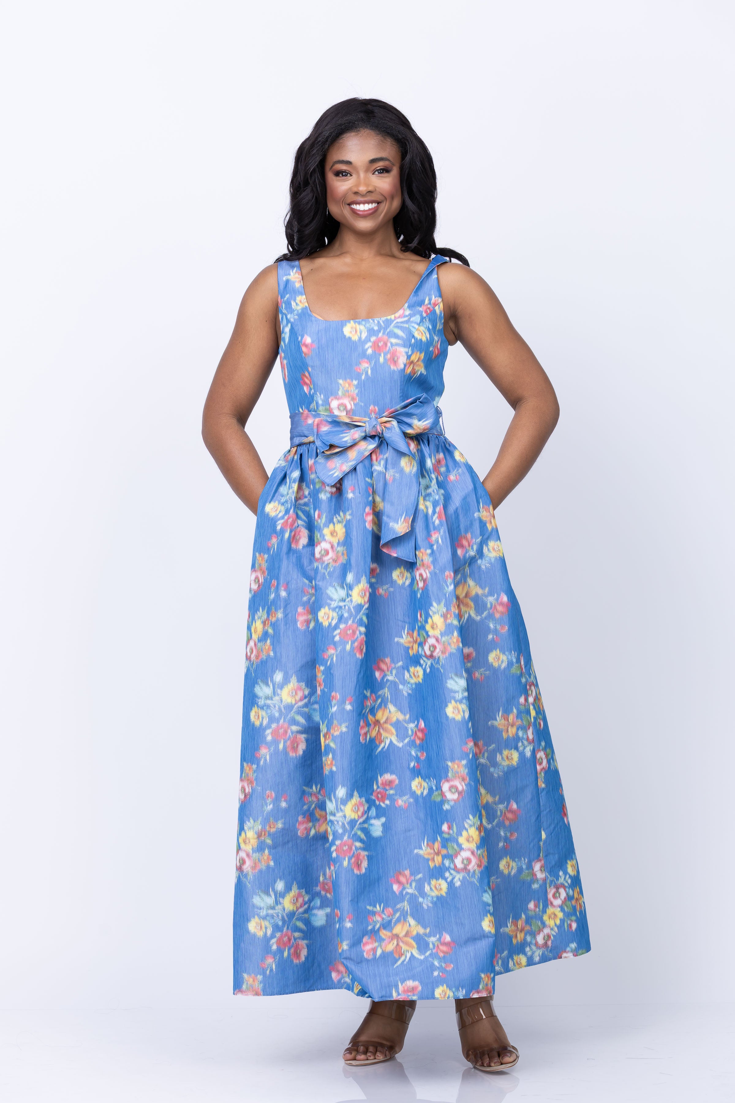 Indulge in the stunning floral print and gorgeous silhouette of the Shoshanna Wren Dress in Sky Multi. The square open neckline and cinched waistline provide a flattering fit, while the boning and hidden zipper construction offer support and ease of wear. Perfect for any special occasion.