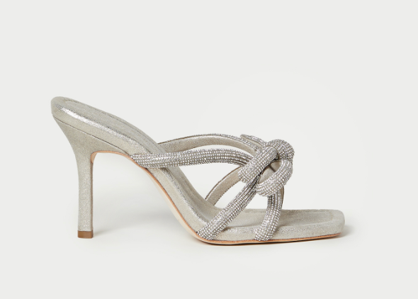 Take your look to the next level with the Margi Leather Bow Heeled Sandal from Loeffler Randall. This sophisticated sandal features a knotted bow detail in chic metallic champagne crinkled Italian leather. The padded footbed with gold stamped logo and a 3.5 inch heel ensure maximum comfort and style. Elevate your look and captivate with confidence!