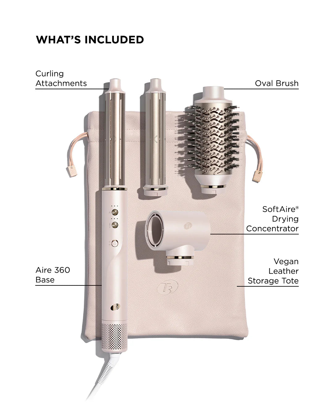 T3 Aire 360 Technology gathers hair to form curls with nothing but air, and custom-blend CeraGloss™ ceramic barrels create glossy curls that stay all day. An expertly engineered oval brush smooths, lifts, and shapes. And a SoftAire® drying concentrator delivers fast-yet-gentle drying that helps protect hair's natural moisture.