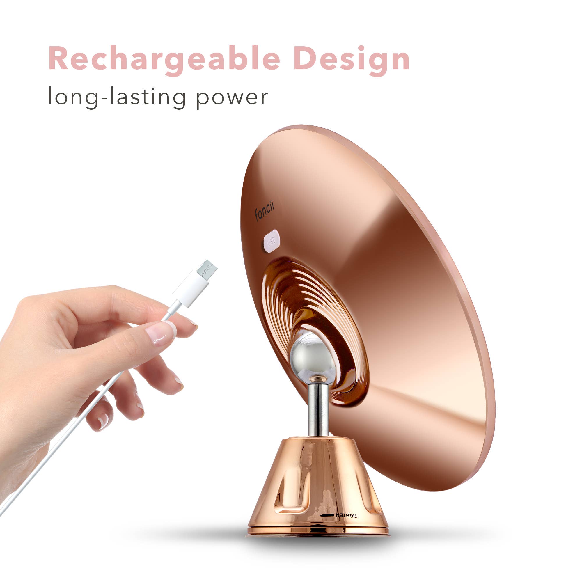 The most versatile mirror you’ll ever own. Lana’s premium 10x magnification shows every detail with crystal clarity, while 3 dimmable LED lights give you perfect, shadow-free lighting anytime. The powerful suction mount sticks to almost any surface, and the 360° swivel lets you find your best angle with ease. Rechargeable and eco-friendly, Lana is designed to look as good as it works—available in gorgeous rose gold or sleek chrome to elevate any space.