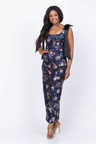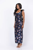 Milly Kyle Sleeveless Column With Bow Shoulder in Navy Multi