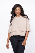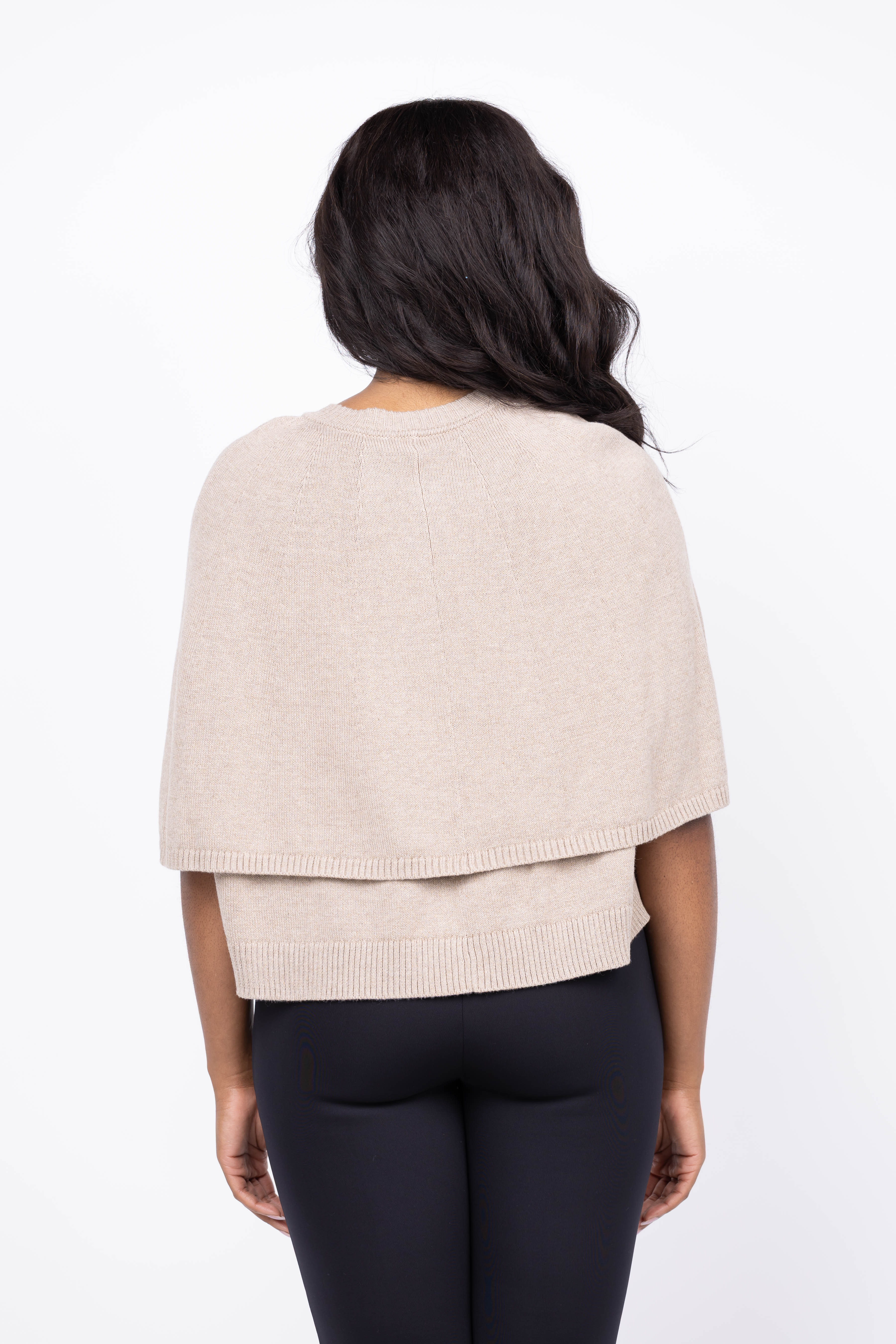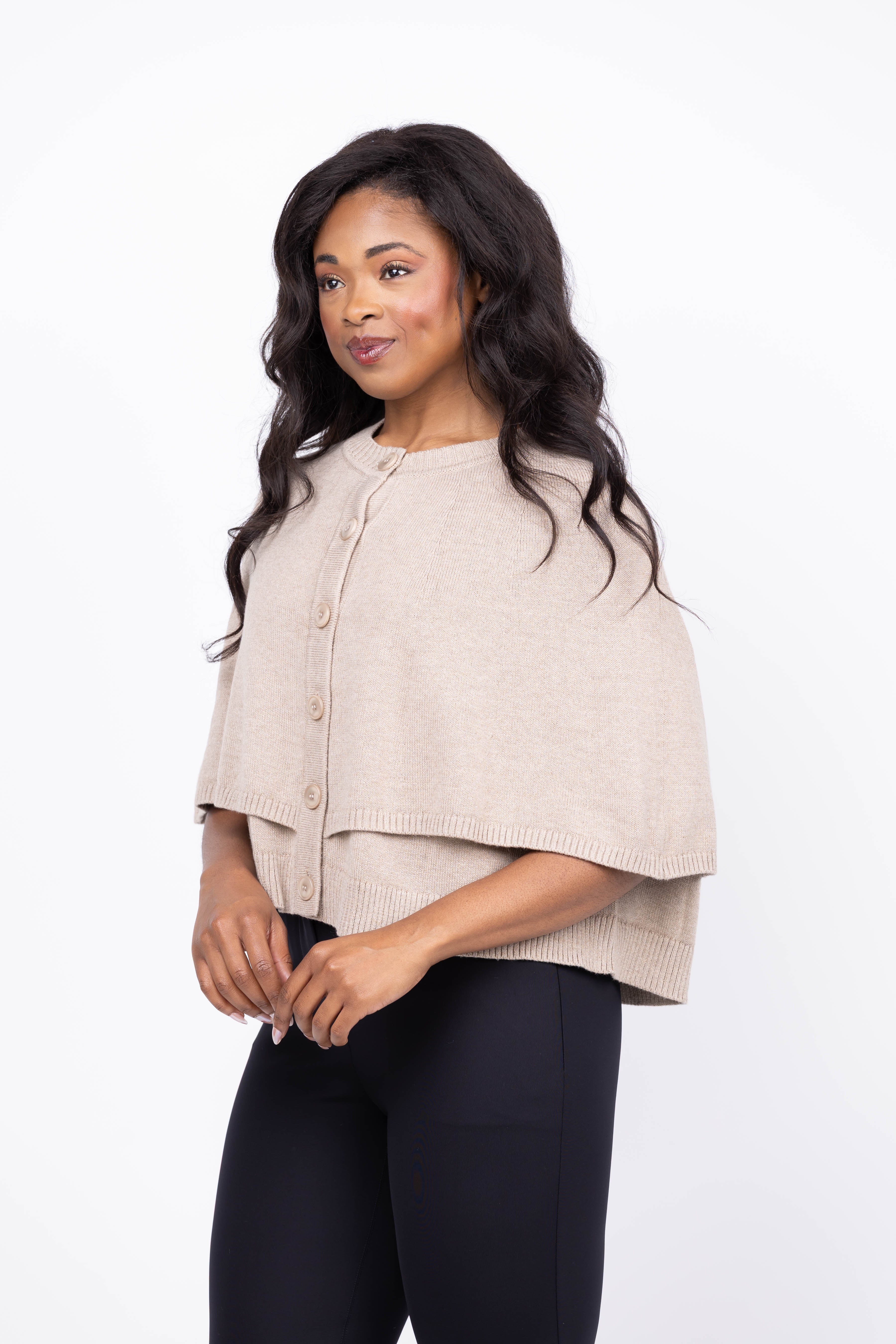 Elevate your wardrobe with the J. Society Button Front Cape in Mushroom. Crafted from soft cotton, this cape-style sweater features a classic crew neck and convenient button-front closure, blending comfort with effortless style. Its versatile design layers beautifully over any outfit, making it perfect for chilly days when you want to stay warm without sacrificing fashion. Add a touch of cozy sophistication to your look with this uniquely stylish piece.