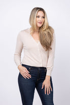 This J. Society Cardigan in Sand offers a versatile everyday essential with its flattering v-neck and cropped, shorter length. Perfect for layering, it adds a fresh, stylish touch to any outfit while keeping you comfortable throughout the day. Elevate your wardrobe with this effortlessly chic piece.