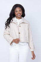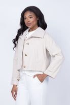 .The J. Society Cropped Trench Jacket in Khaki is a timeless wardrobe essential that brings polished sophistication to any outfit. This tailored cropped silhouette offers a modern take on the classic trench, perfect for layering over dresses, tees, or sweaters. Crafted with attention to detail, it features structured lines and a flattering fit that works for both casual and professional settings. The versatile khaki tone pairs effortlessly with your existing pieces, making it an investment piece you'll reach for season after season.