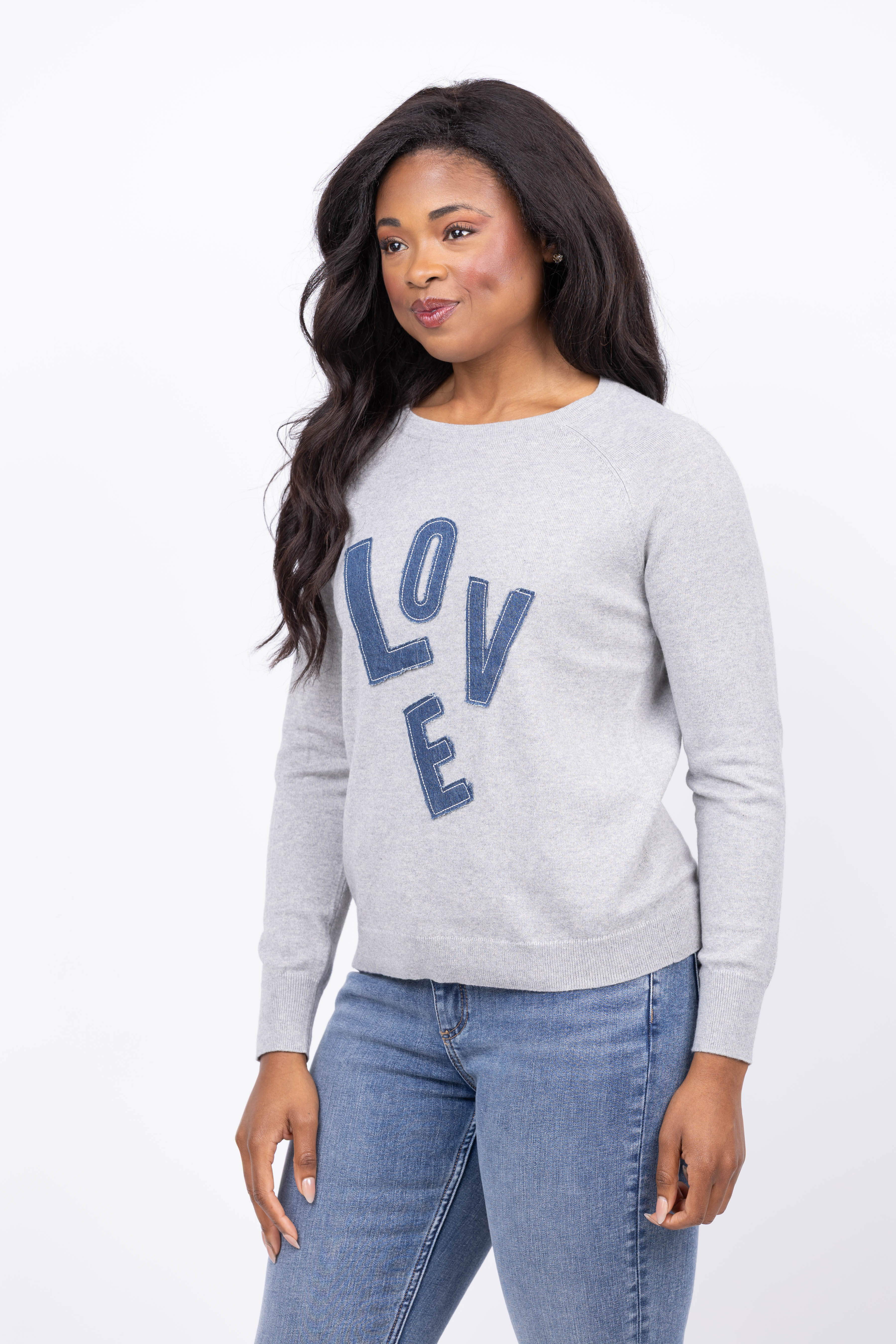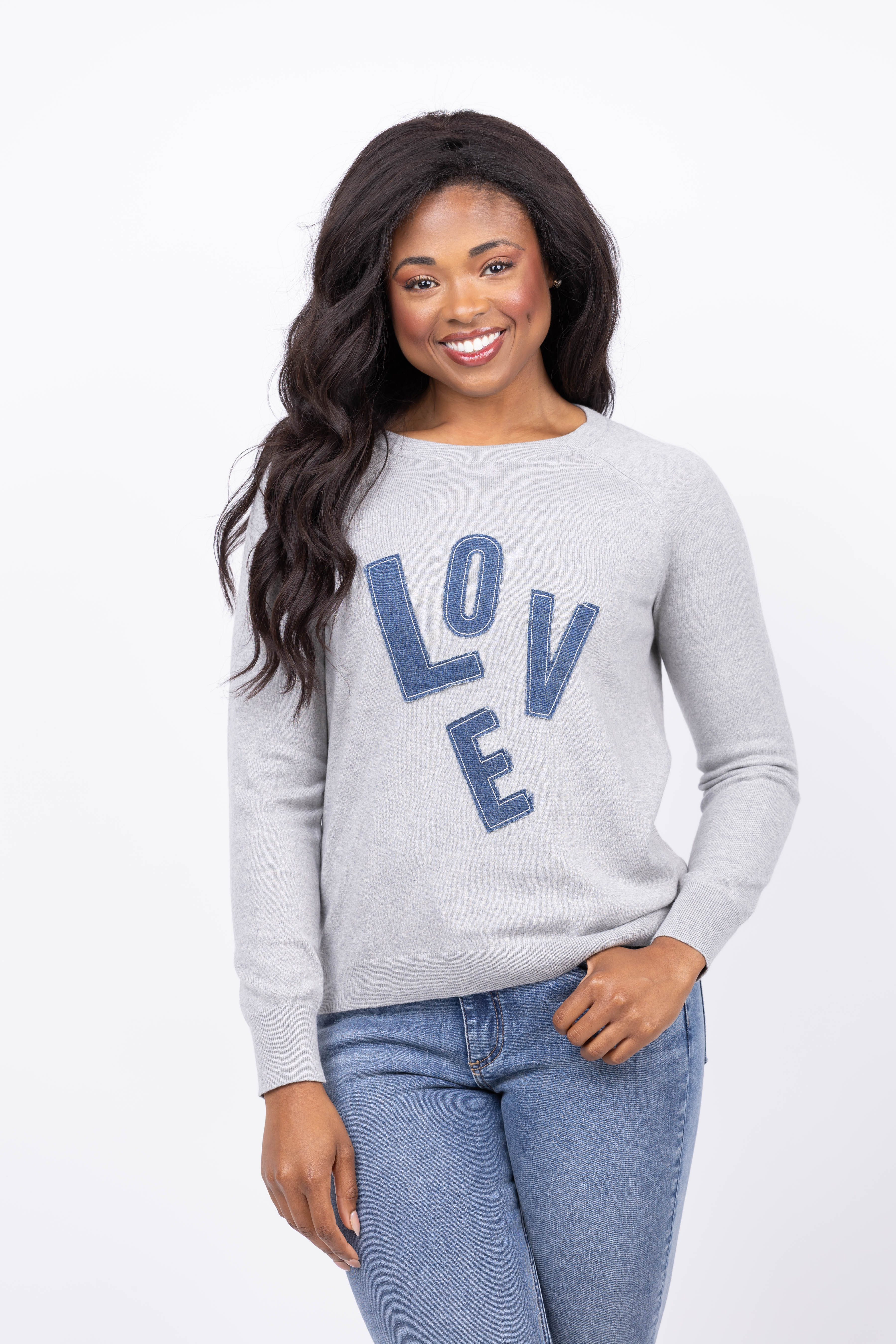 Show your passion for casual style with the J. Society Denim Love Crew in Heather. This cozy crewneck sweatshirt features "Love" spelled out in denim letters, adding a unique and trendy touch to your everyday look. Perfect for layering or wearing on its own, it offers both comfort and effortless cool for any casual occasion.