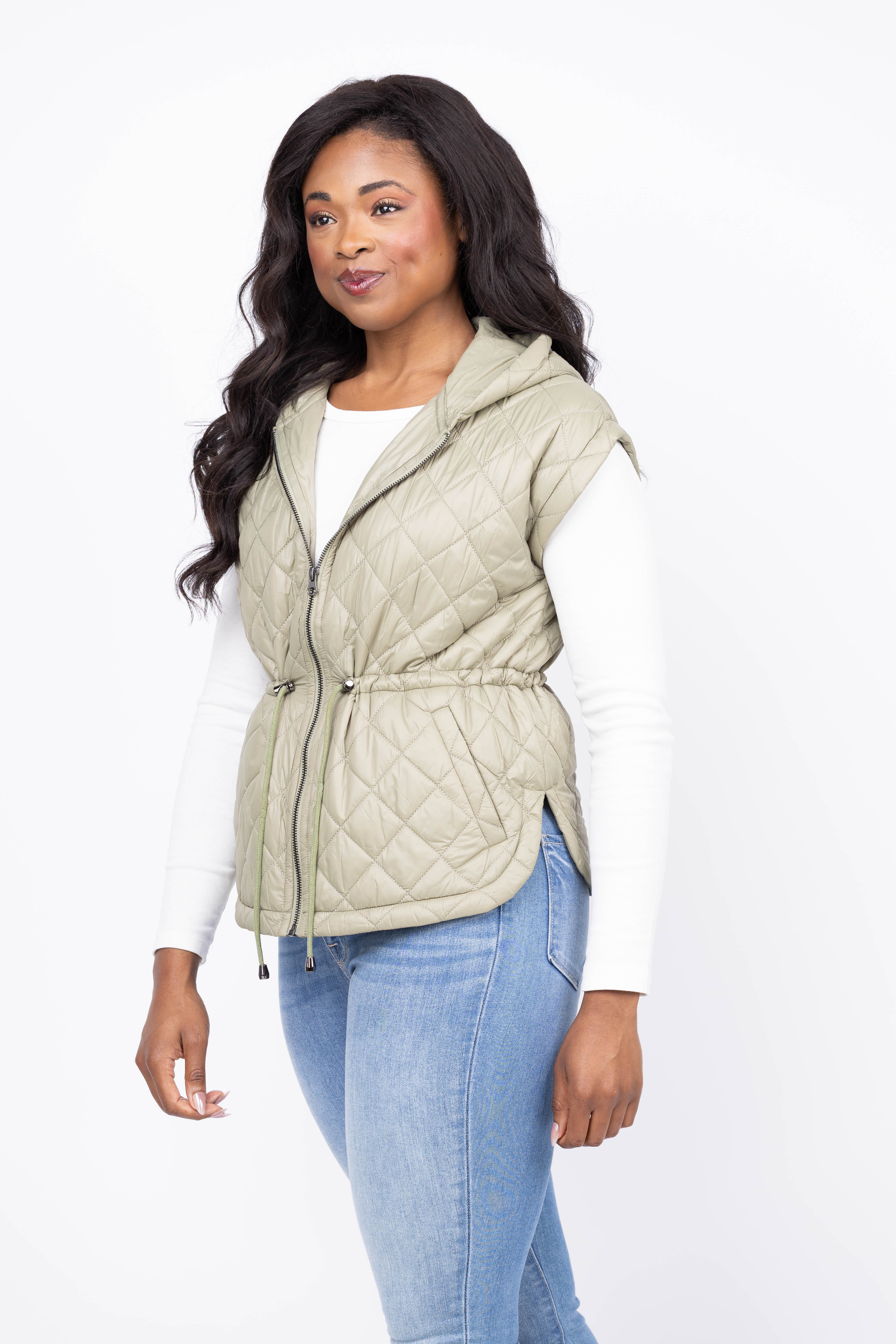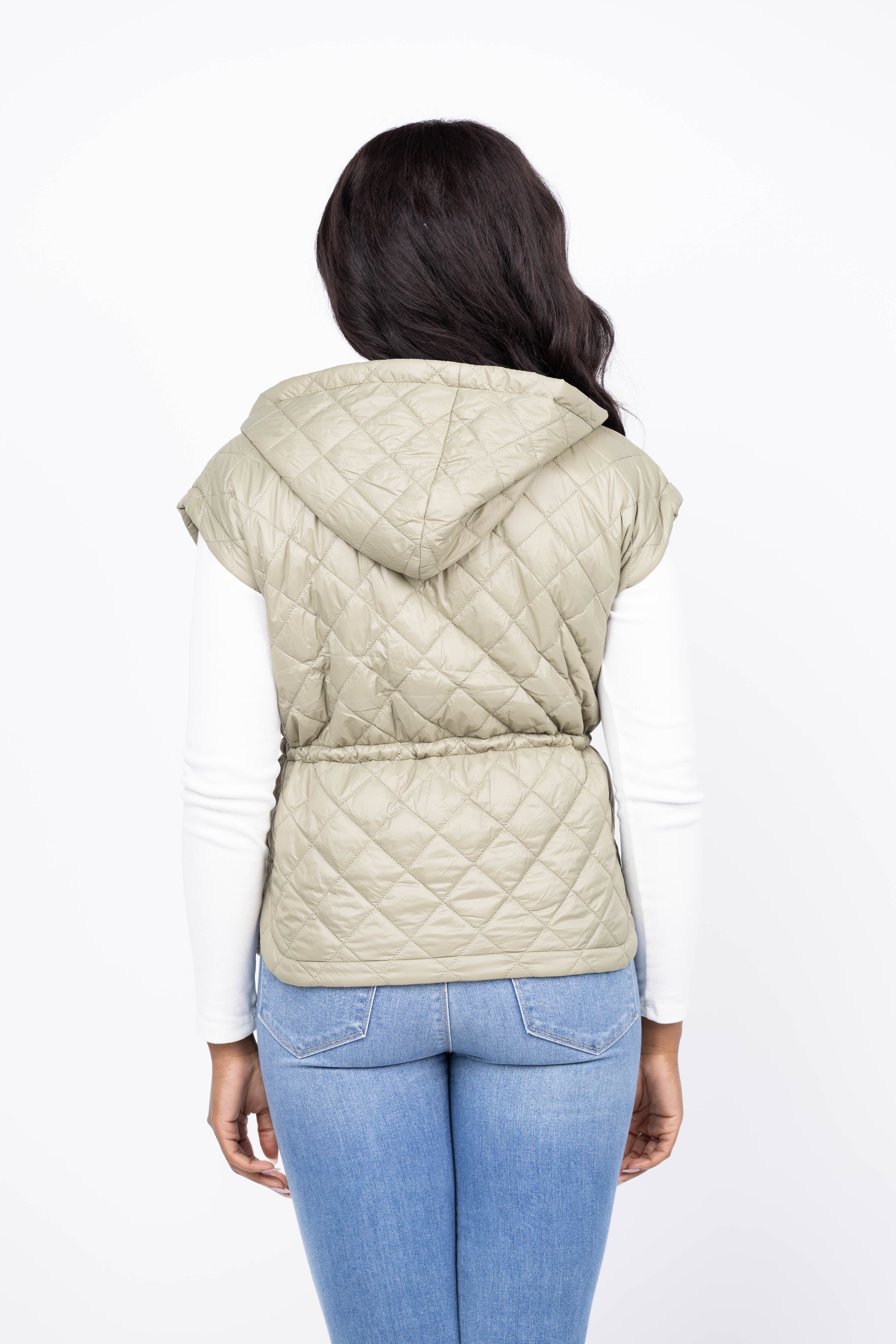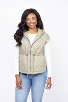 Stay warm without the bulk in the J. Society Quilted Hooded Vest in Olive. This lightweight puffer vest features a cozy hood and convenient side pockets, perfect for keeping essentials close. The drawstring waist lets you customize your fit, while the front zip closure offers easy layering. Ideal for crisp mornings and cool evenings, this vest combines style and function effortlessly.