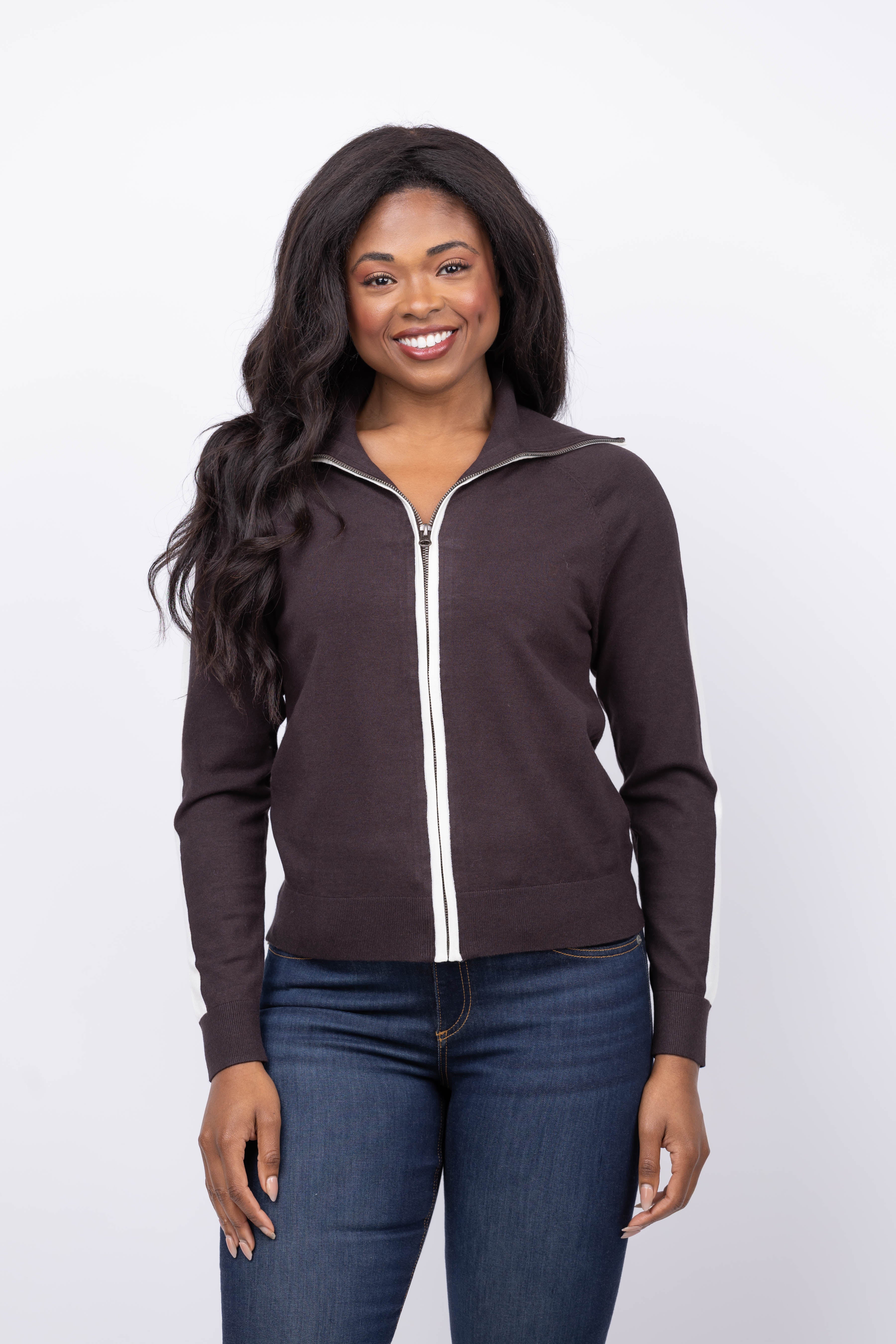 J. Society Single Stripe Zip Front Jacket in Chocolate