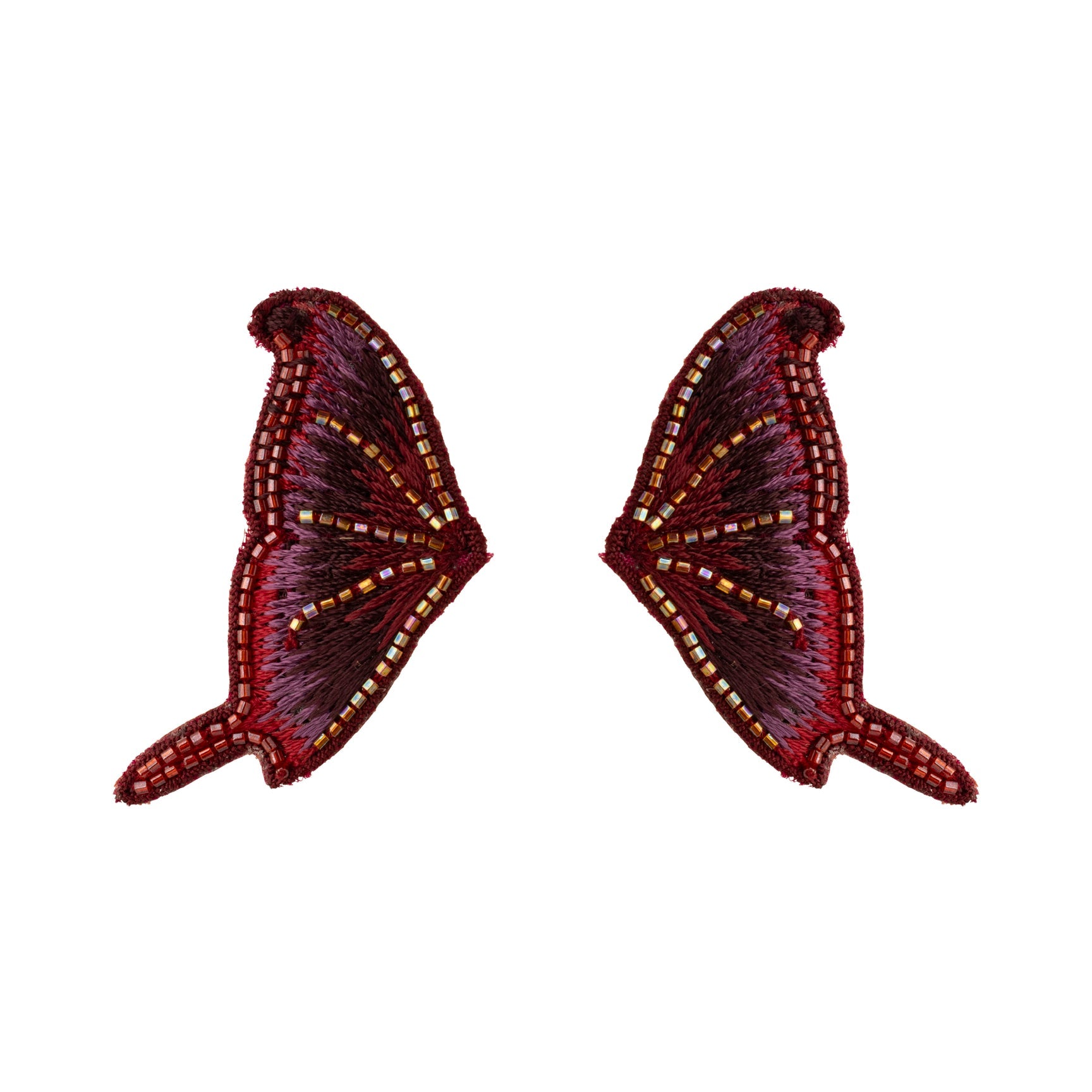 Elevate your jewelry game with the Mignonne Gavigan St. Marks Butterfly Studs. Handcrafted with exquisite detail, these earrings feature a unique butterfly shape in rich burgundy and plum hues. The delicate threading adds a touch of shimmer, making them perfect for both everyday wear and special occasions.