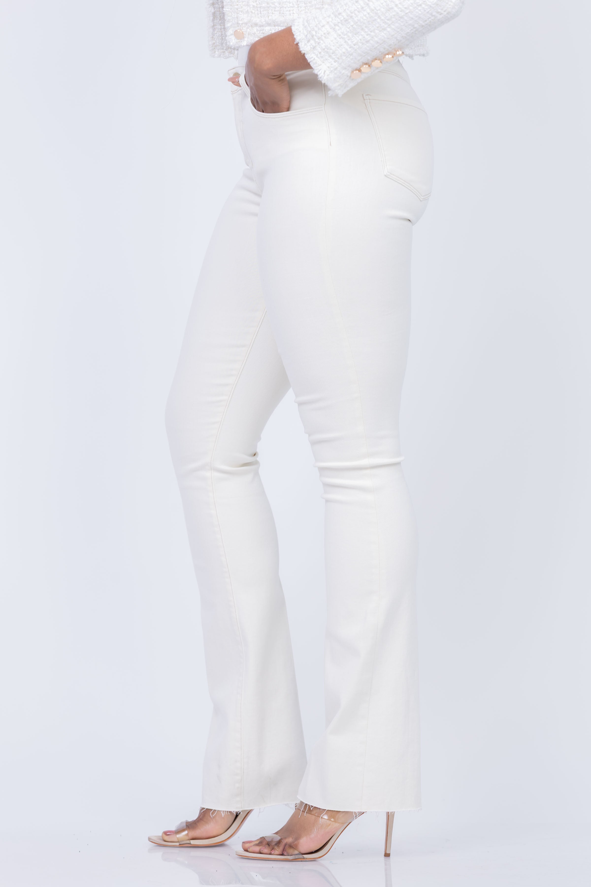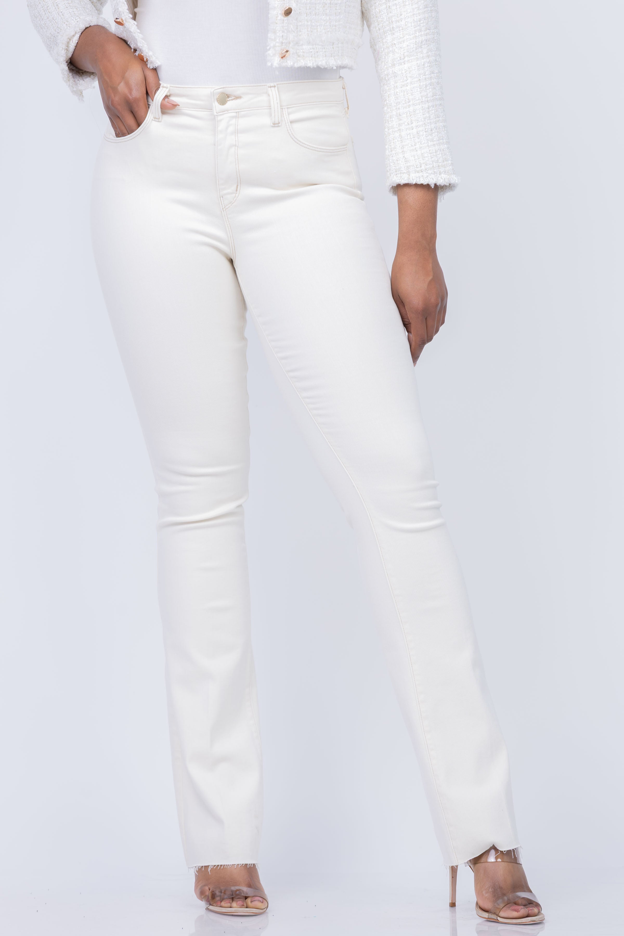 L'Agence Ruth High Rise Straight Raw Hem Jeans in Macadamia