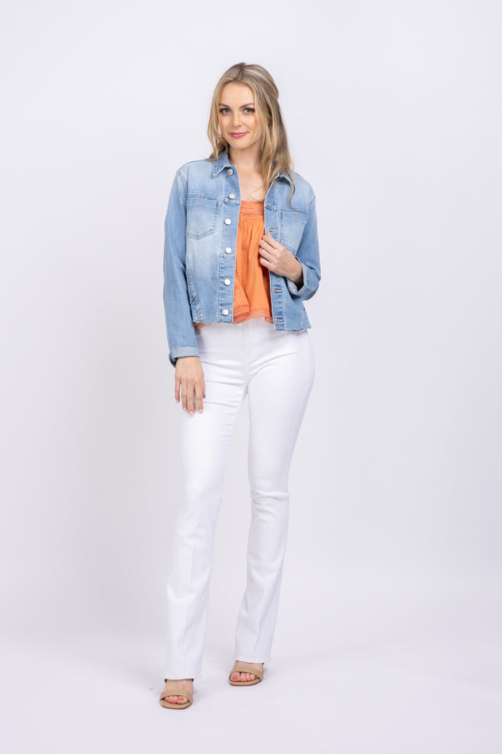 L'AGENCE Selma Cotton Stretch High Rise Bootcut Jeans in Blanc