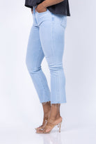 Get ready to make your move with the must-have Mother Hustler Ankle Jean in Ball's in Your Court. This high-rise flare features an ankle-length inseam and a raw hem made from stretch denim. The light blue wash with fading throughout adds an effortless touch to any look.